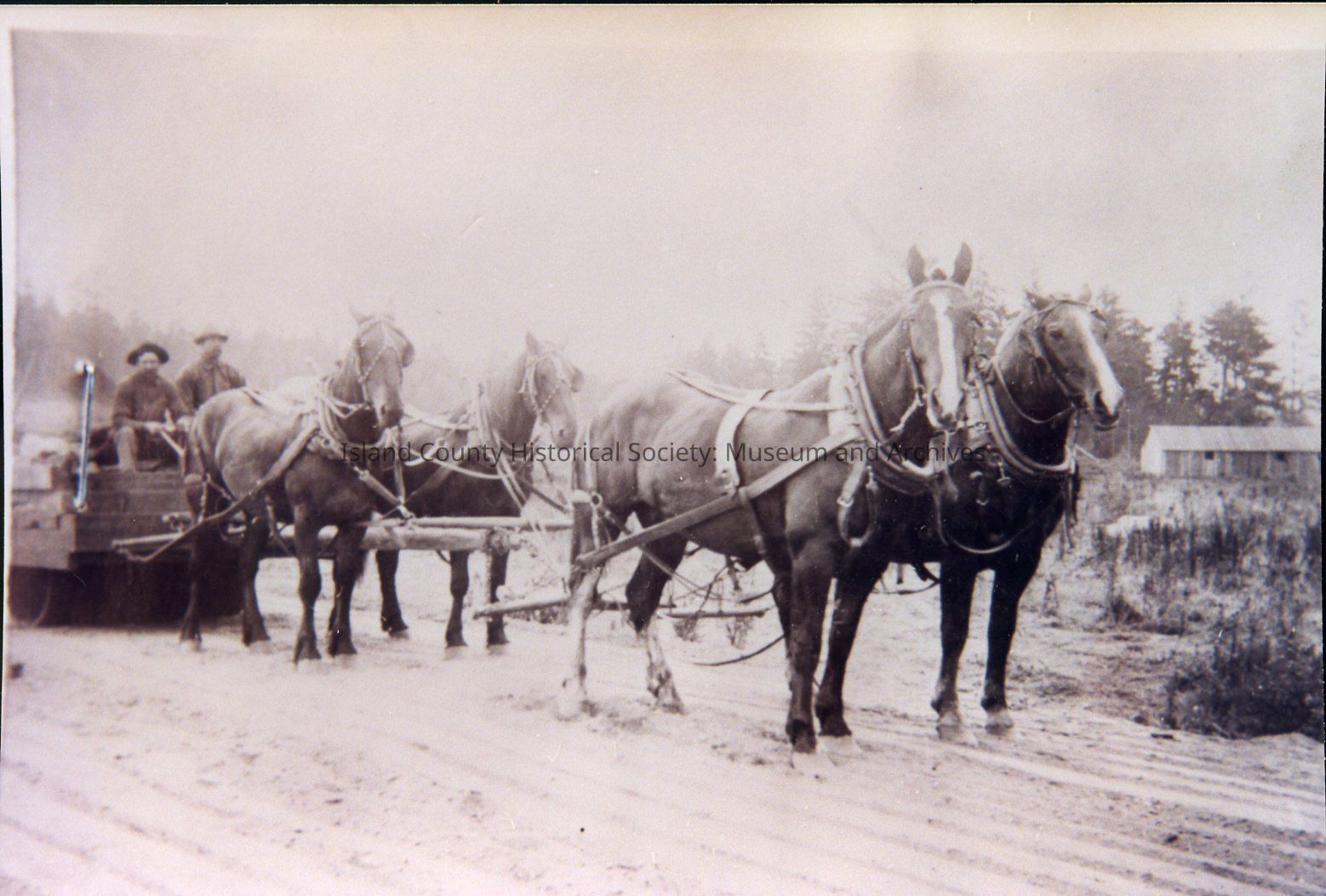 Photograph of horses pulling a road roller at Fort Casey, c. 1902-1913.Photograph Details