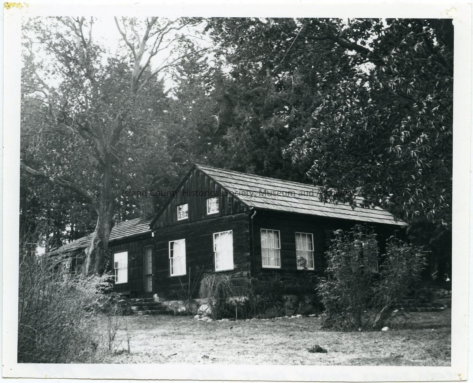 PNRO page 170: built in 1859, additions 1928; originally on a site north of Penn Cove. Maude Fullington bought it, Fred Krueger dismantled it, numbered each log, reassembled at new site. Mary Fullington planned design. Chief Charlie Snakelum and Aleck split over 400 cedar shakes for interior walls. 1956 moved to present locaton higher on the bluff and additions made. 1983 new shingles.