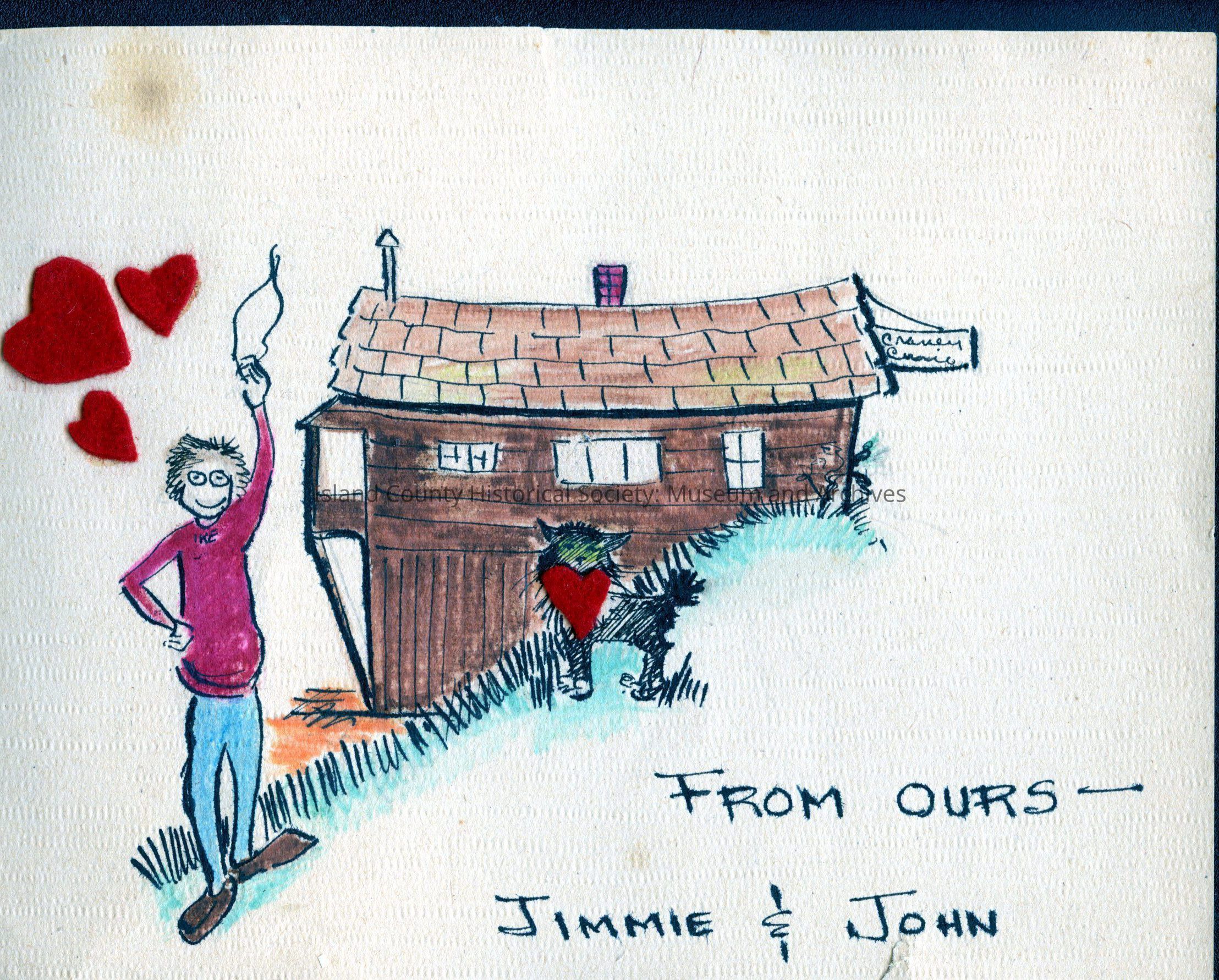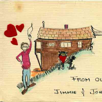 001 - Handmade and Illustrated Valentine on wallpaper by Jimmie Jean Cook.