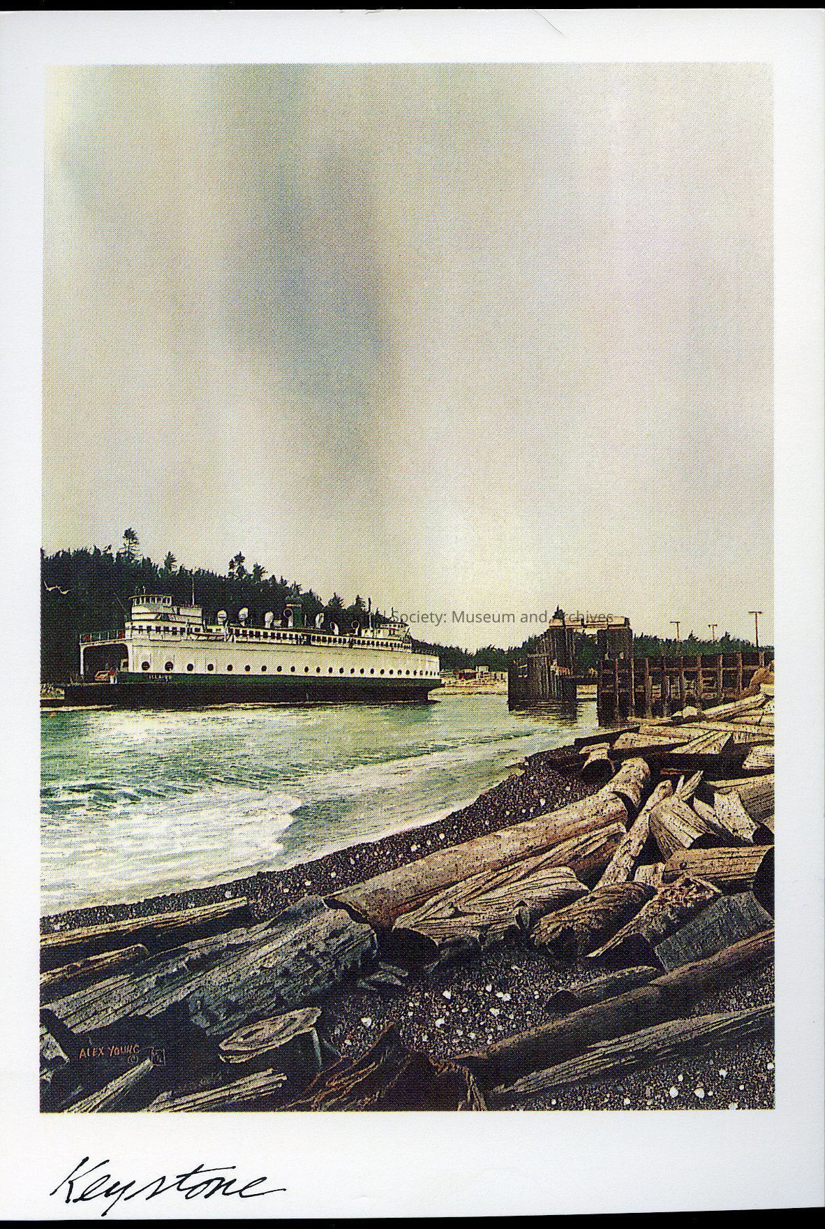 Keystone ferry landing painting postcard by Alex Young (ca. 1991)