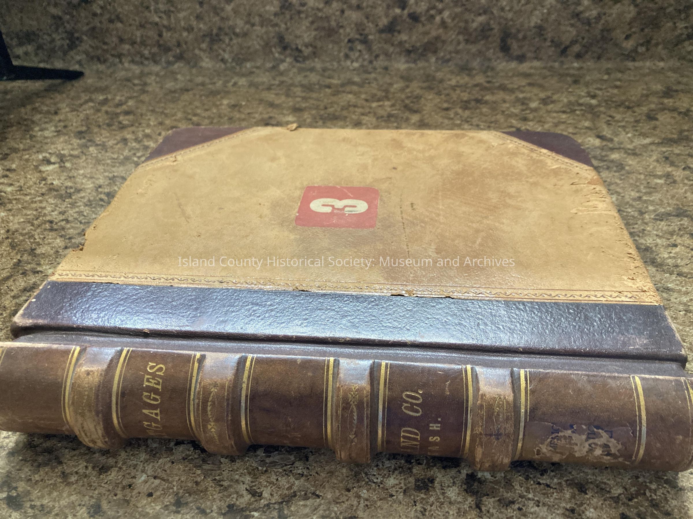Ledger book 3 of this collection contains mortgages from 1904-1907. The ledger was taken from the Lovejoy Courthouse prior to its demolition in 1949. THere is a large red "3" on the front cover. The cover is tan with the spine and corners being dark brown. The spine has "Mortgages" and "Island Co. WASH" in gold lettering. 9.5" wide 10.75 tall