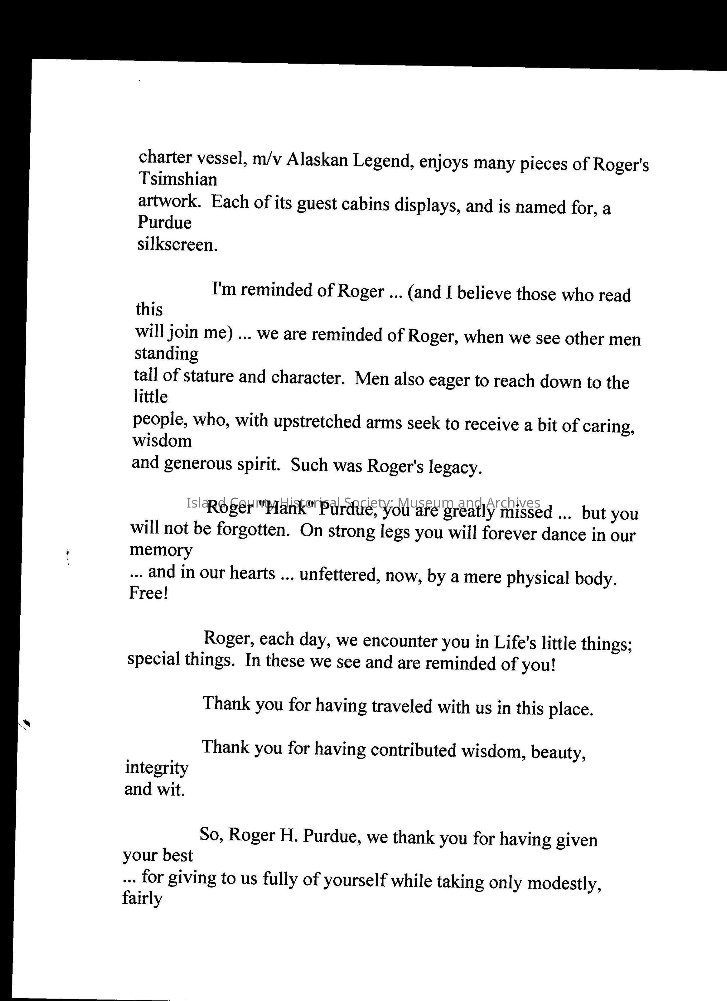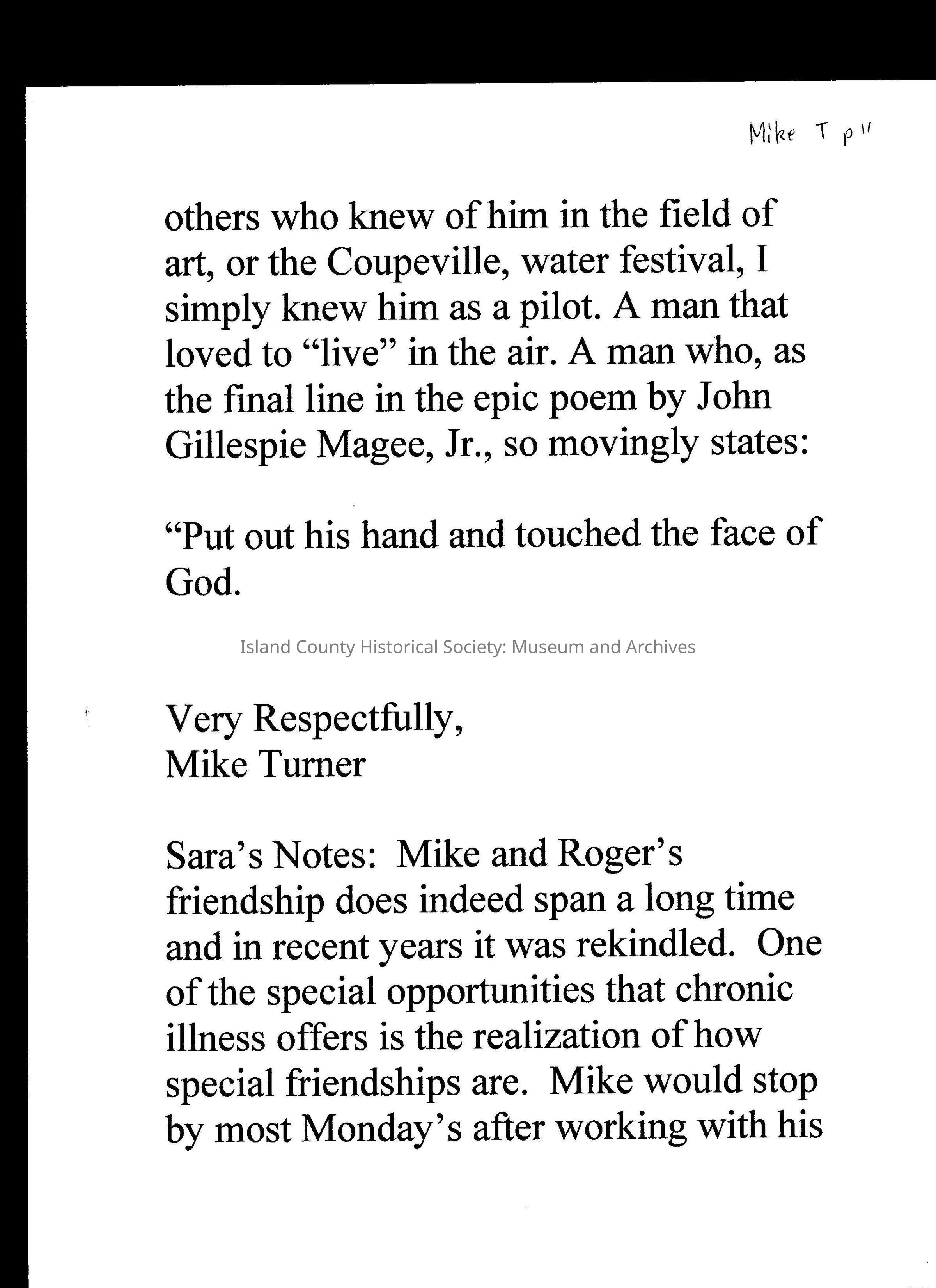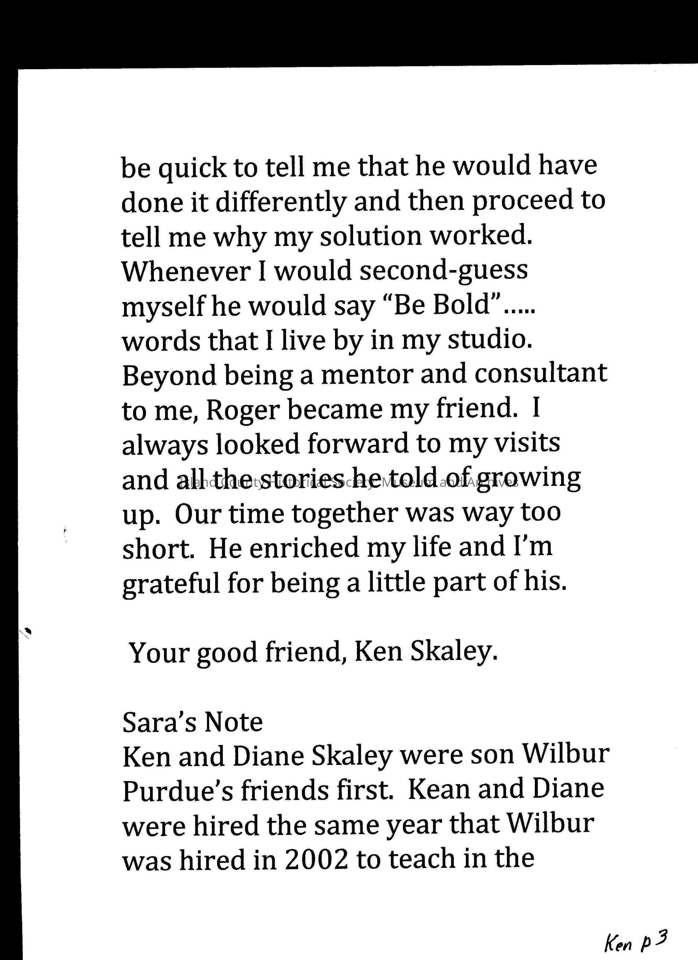 Digital Scans of letters sent to Sara Purdue upon Roger Purdue's death, recounting stories of him and his life.