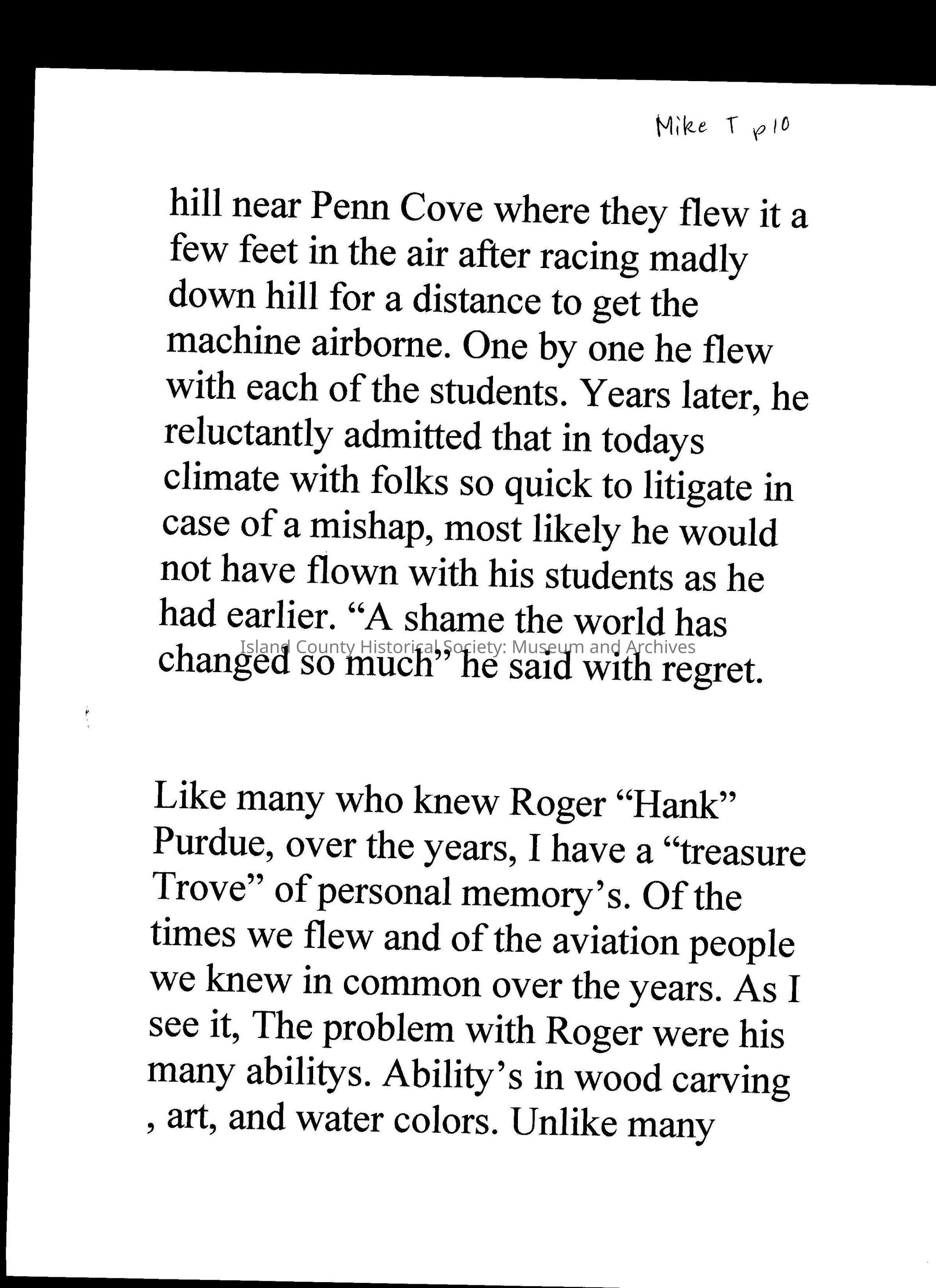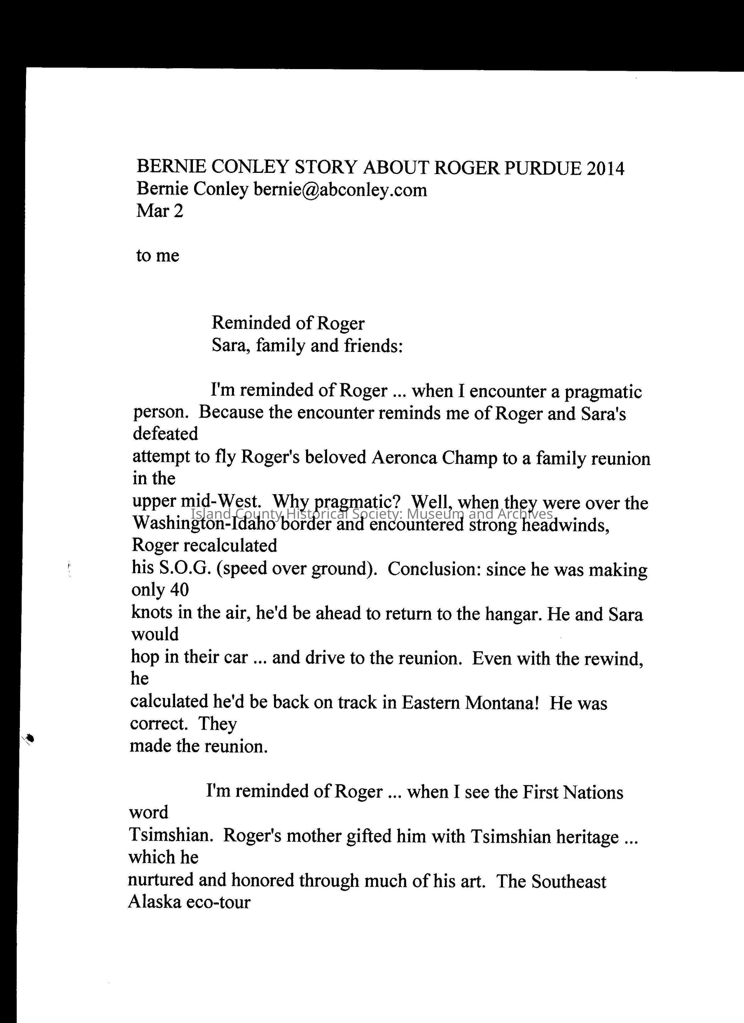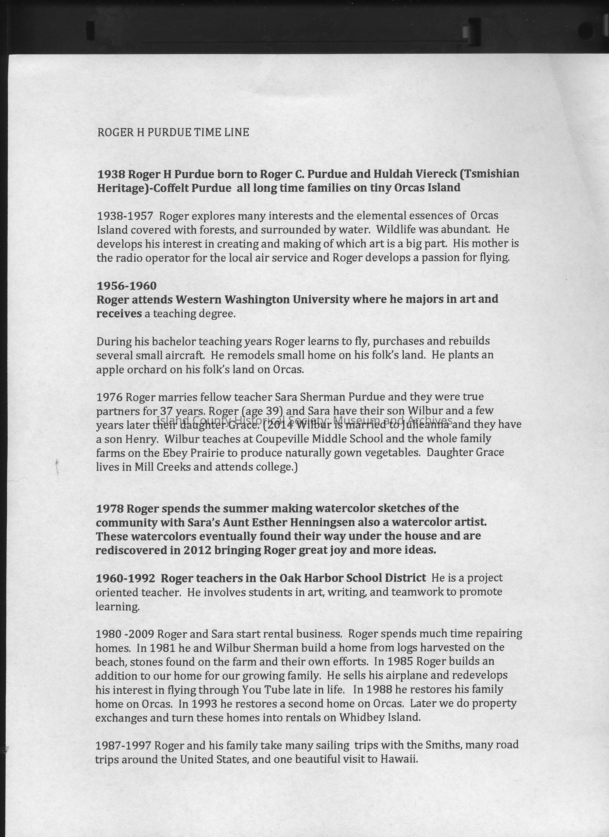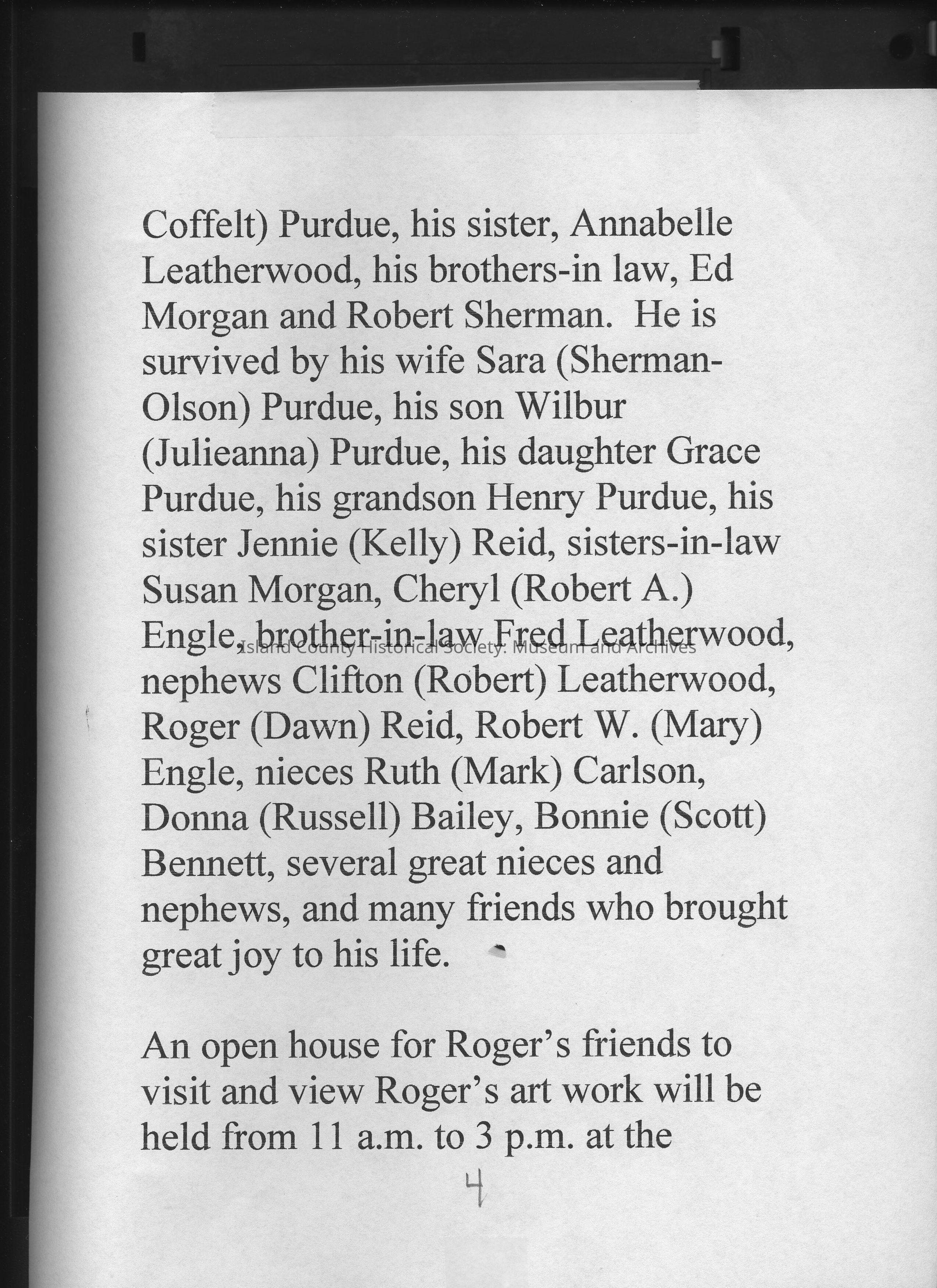 Digital Scans of letters sent to Sara Purdue upon Roger Purdue's death, recounting stories of him and his life.
