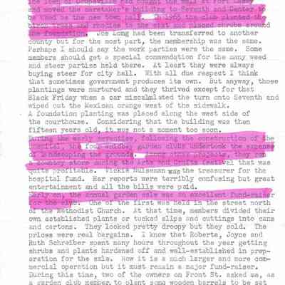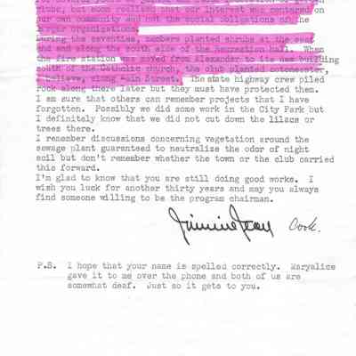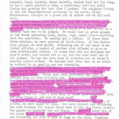 Four-page letter detailing the start of the Coupeville Garden Club and its history. Written by Jimmie Jean Cook, to Betty (last name unknown)