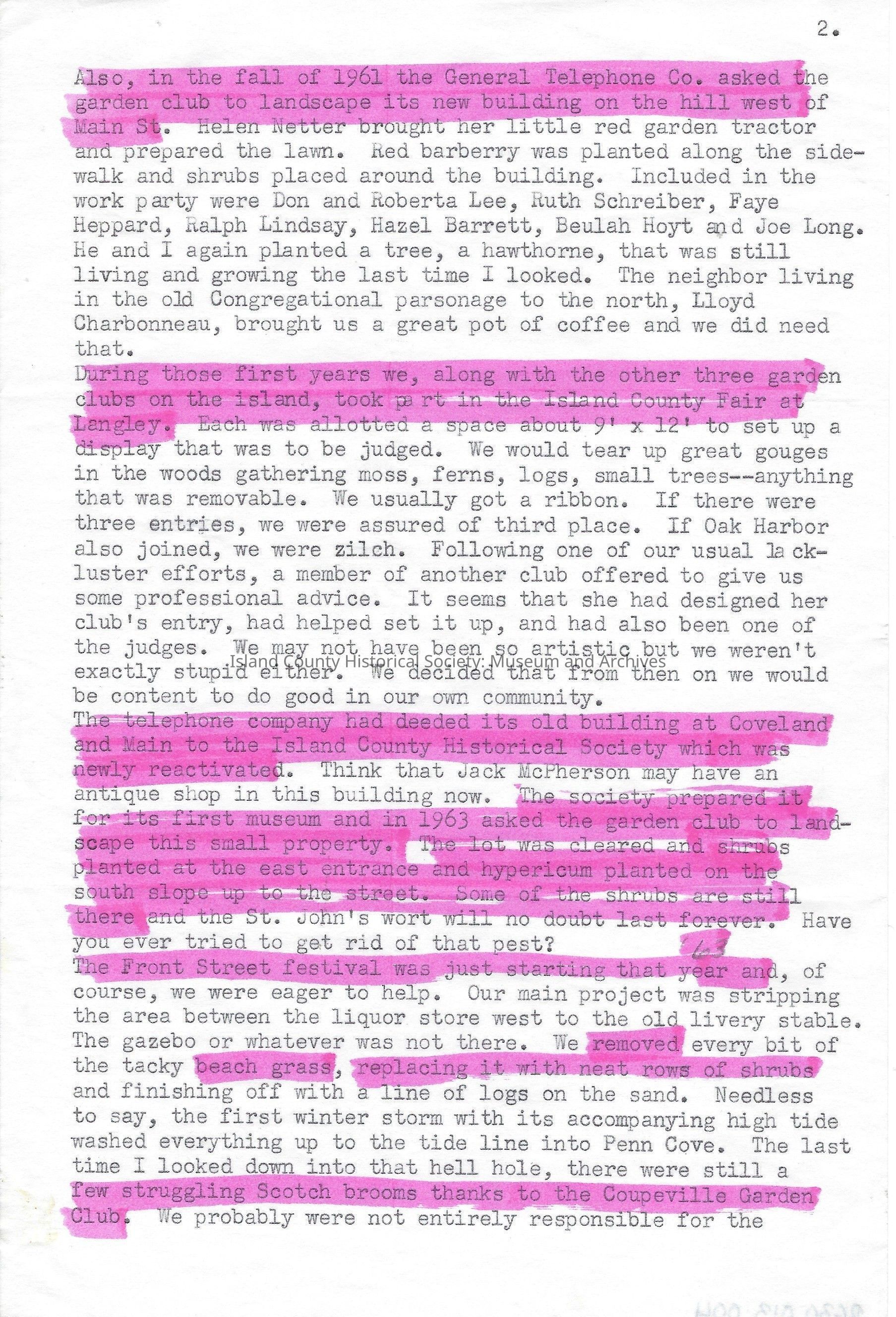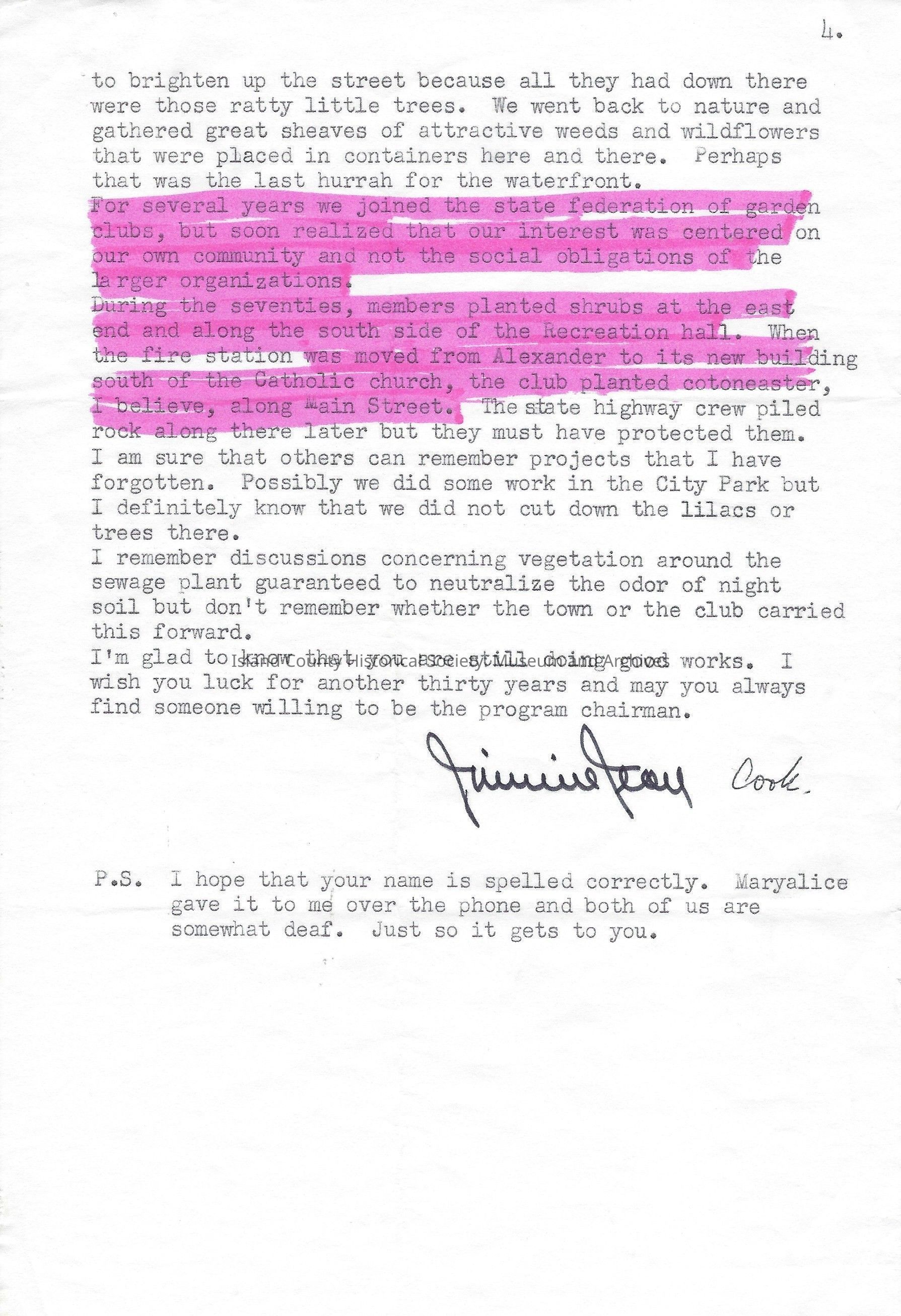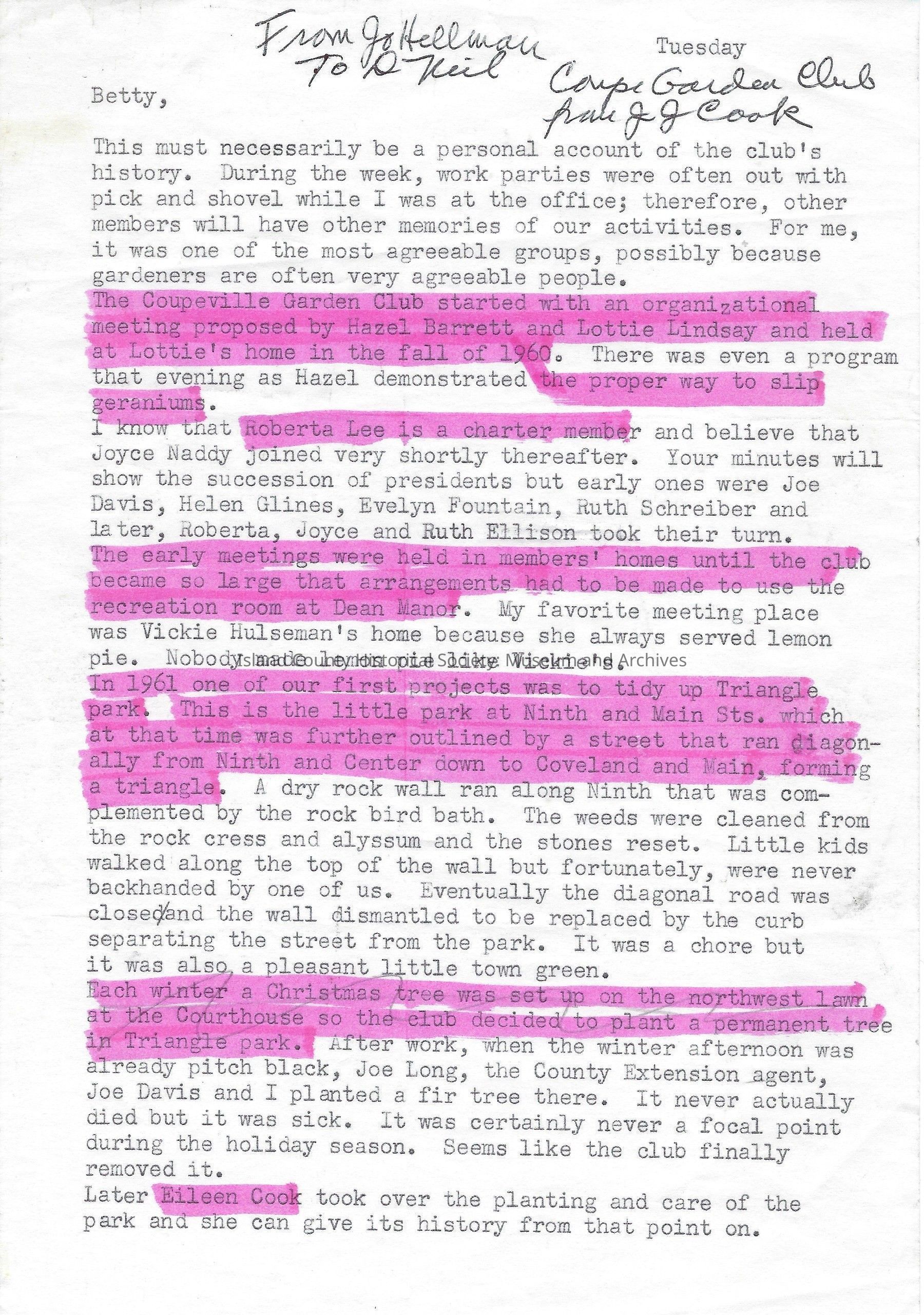 Letter - History of Coupeville Garden Club