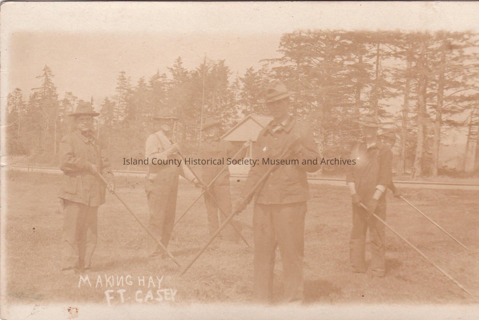 Making Hay on the parade ground, Ft Casey Bandstand in background and current Engle Road (formally Fort Casey road)