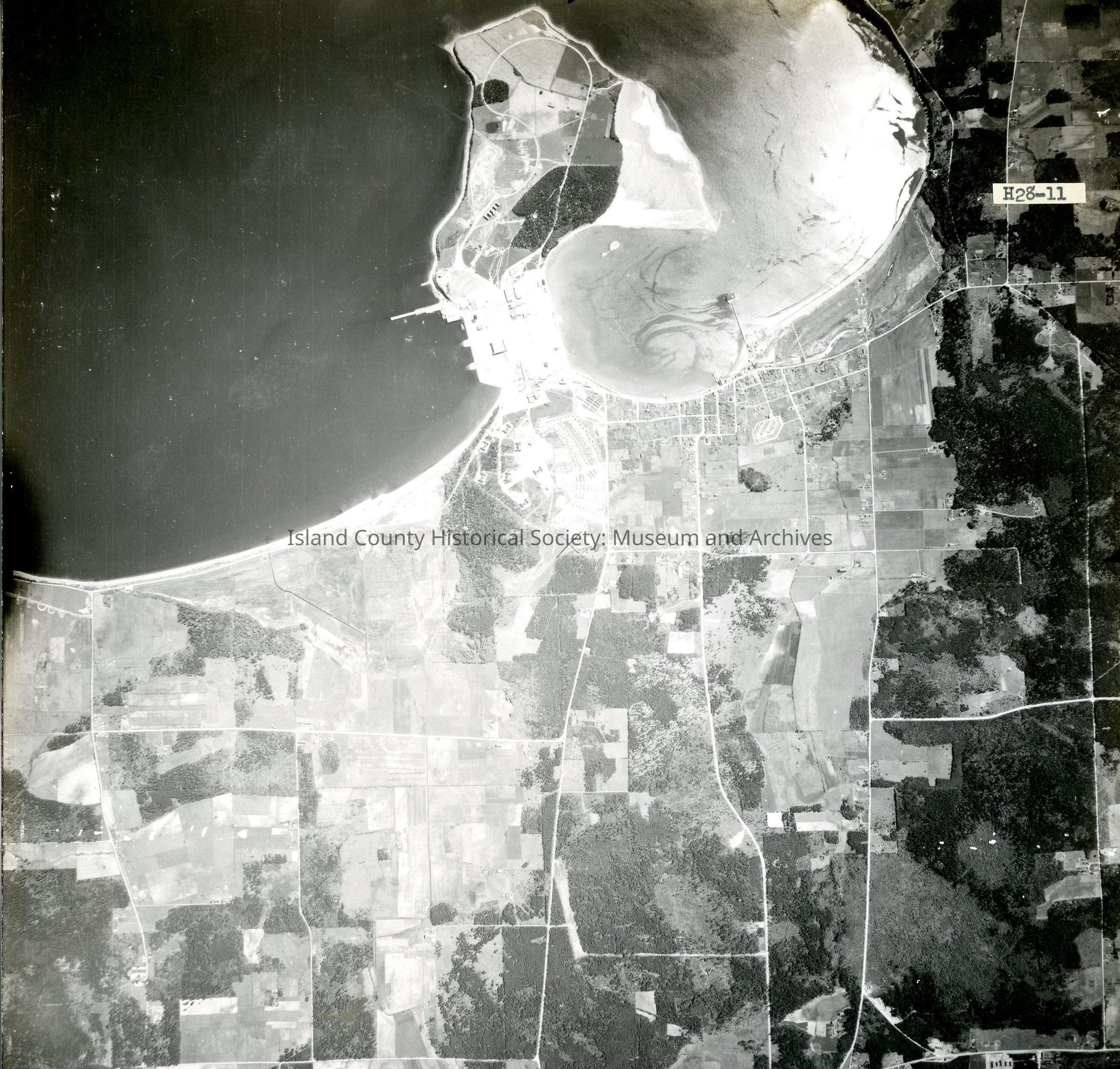View of Oak Harbor and Maylors Point, Navy SeaPlane facility, and Crescent Harbor.