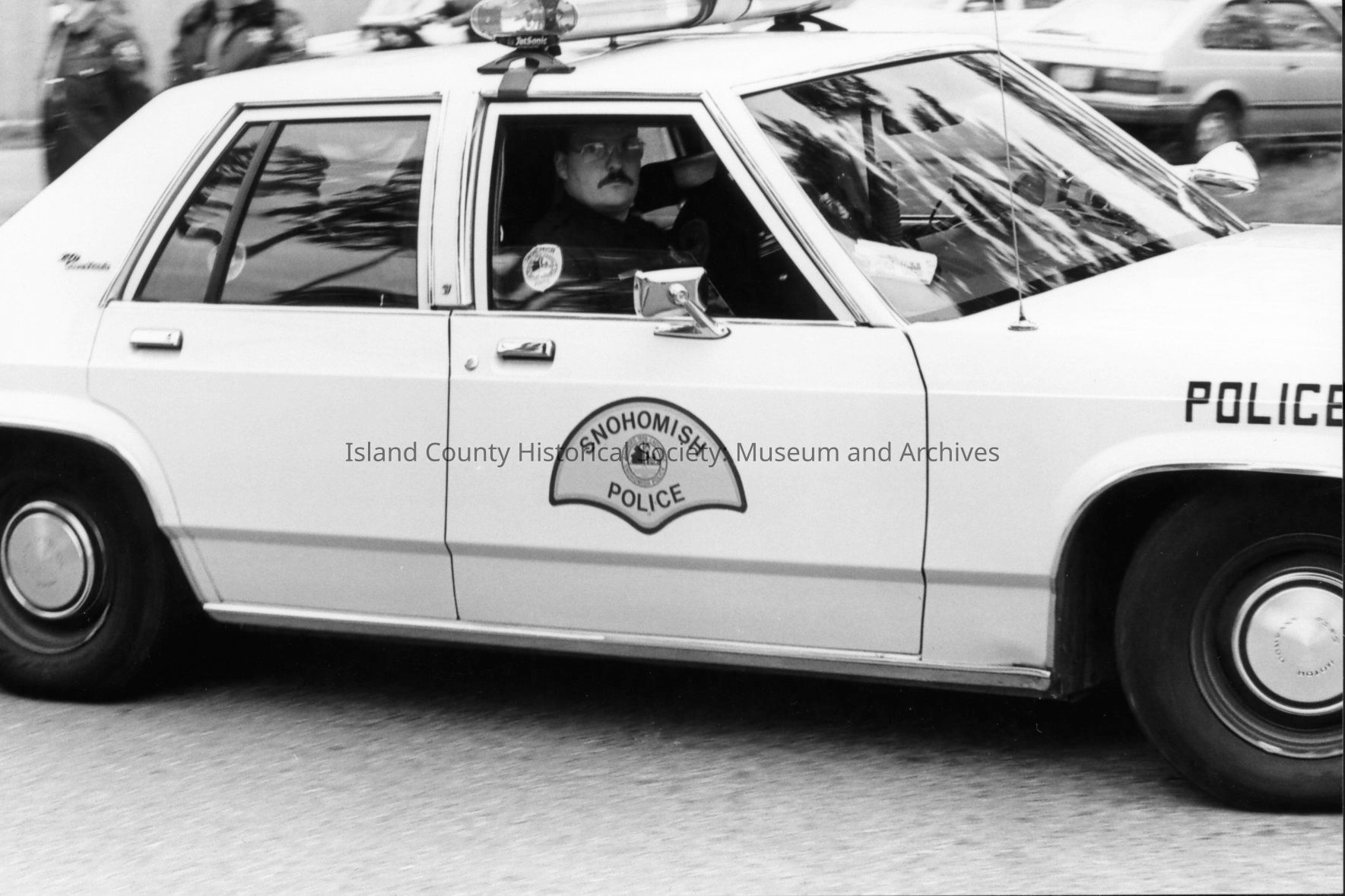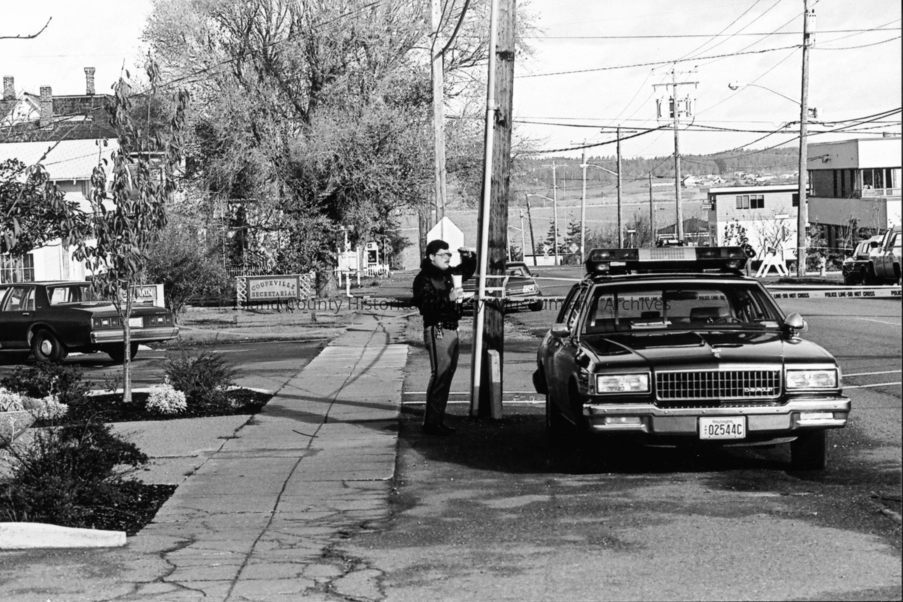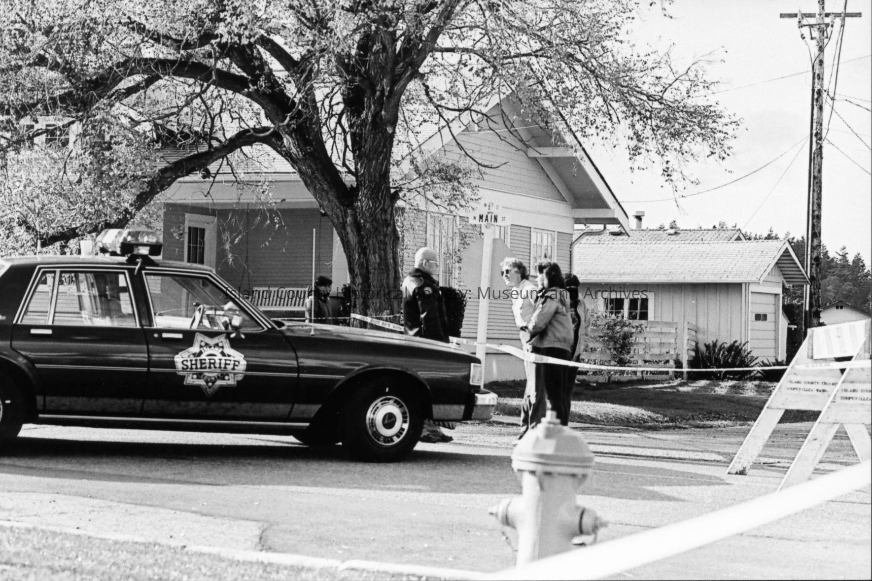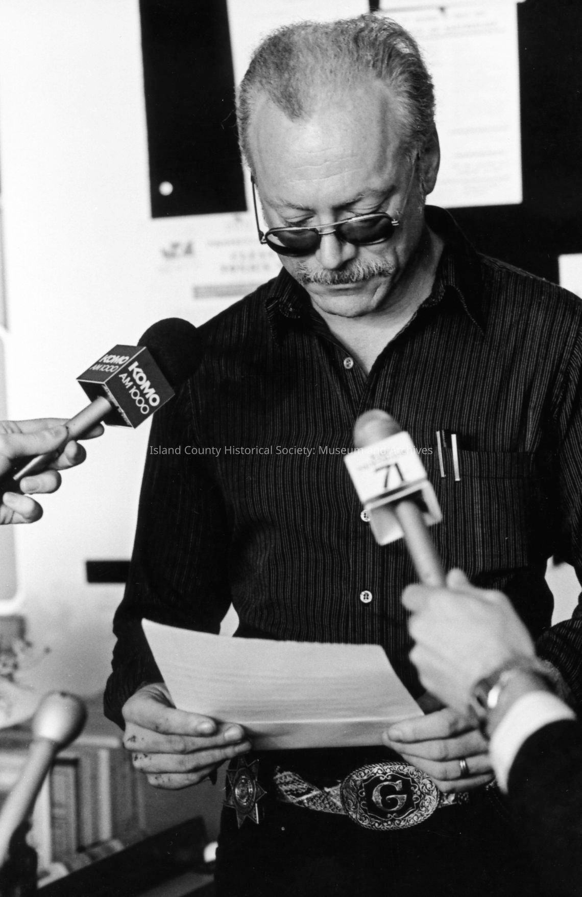 1989 trial of Darren Hutchinson for murder William J. Heffernan and John R. Saxerud, Island County Deputies slain at Sheriff headquarters on November 14, 1987. Defendant transported to Snohomish County. News reporters from throughout Puget Sound attended.Photograph Details
