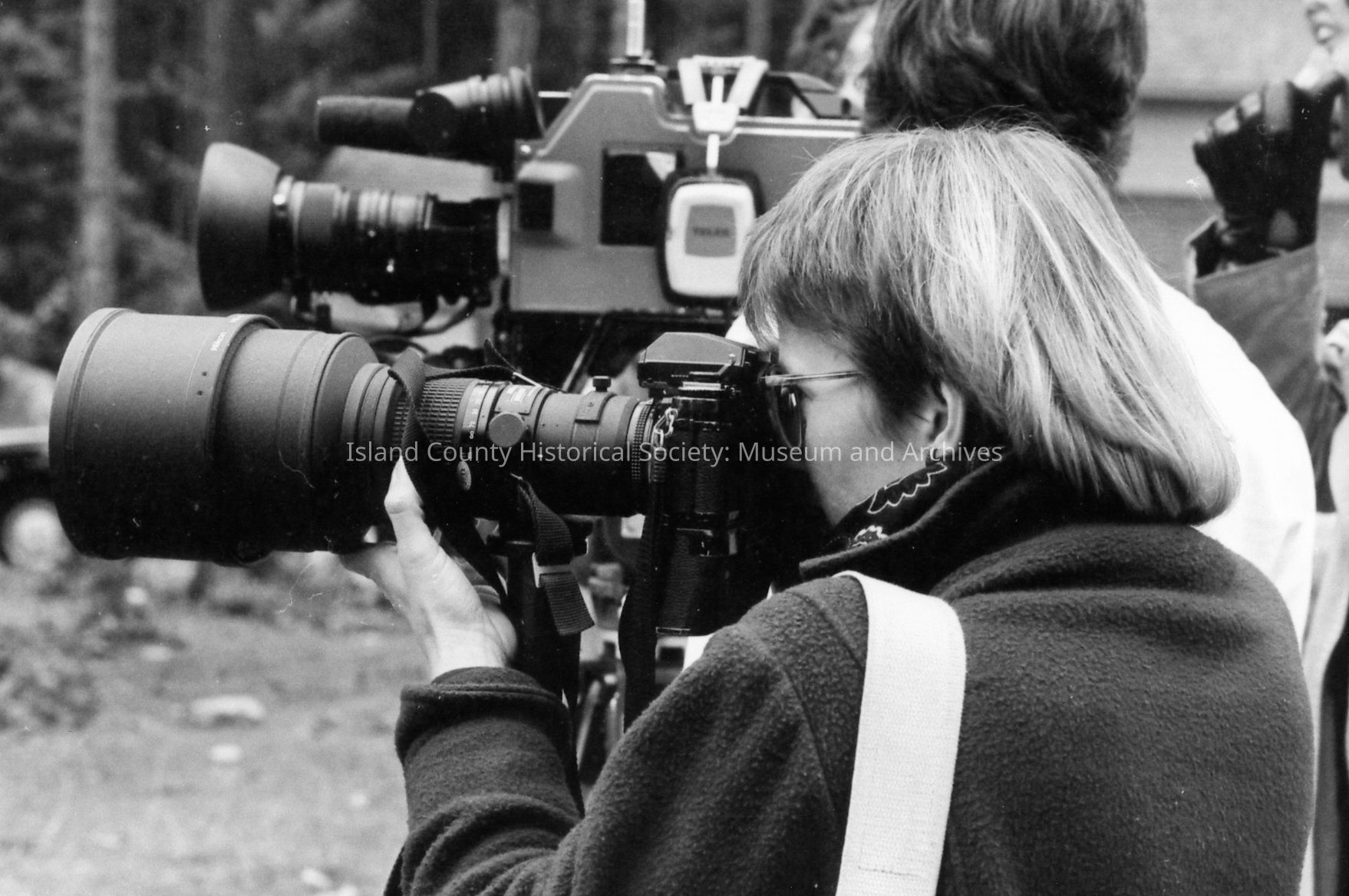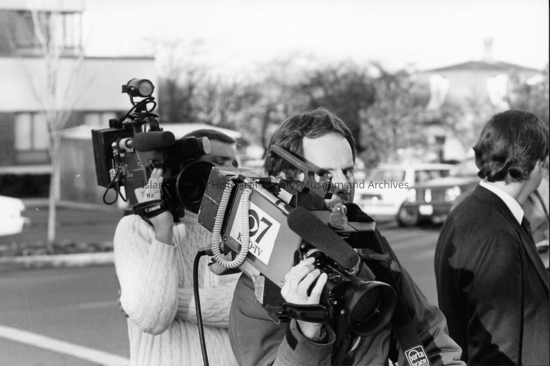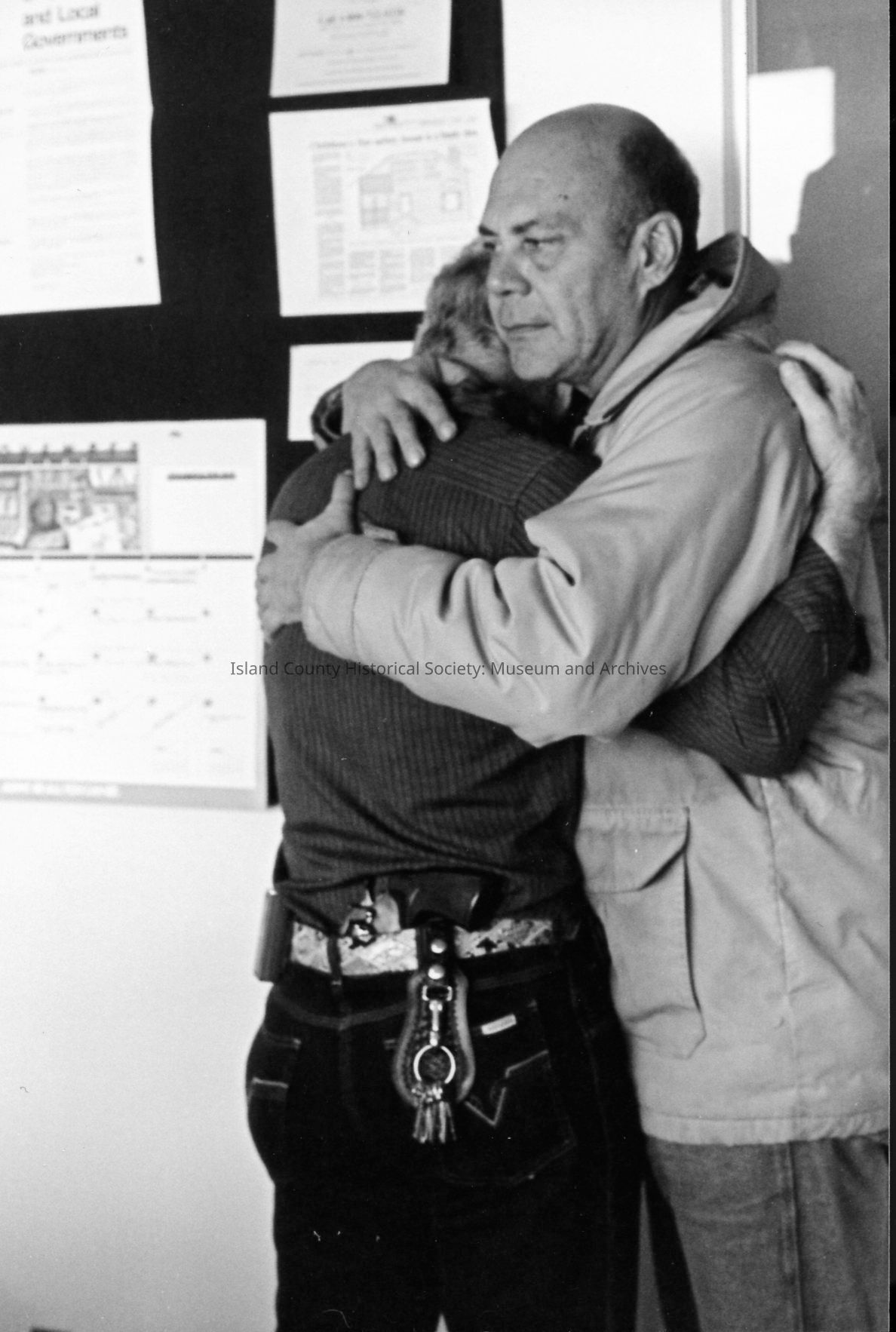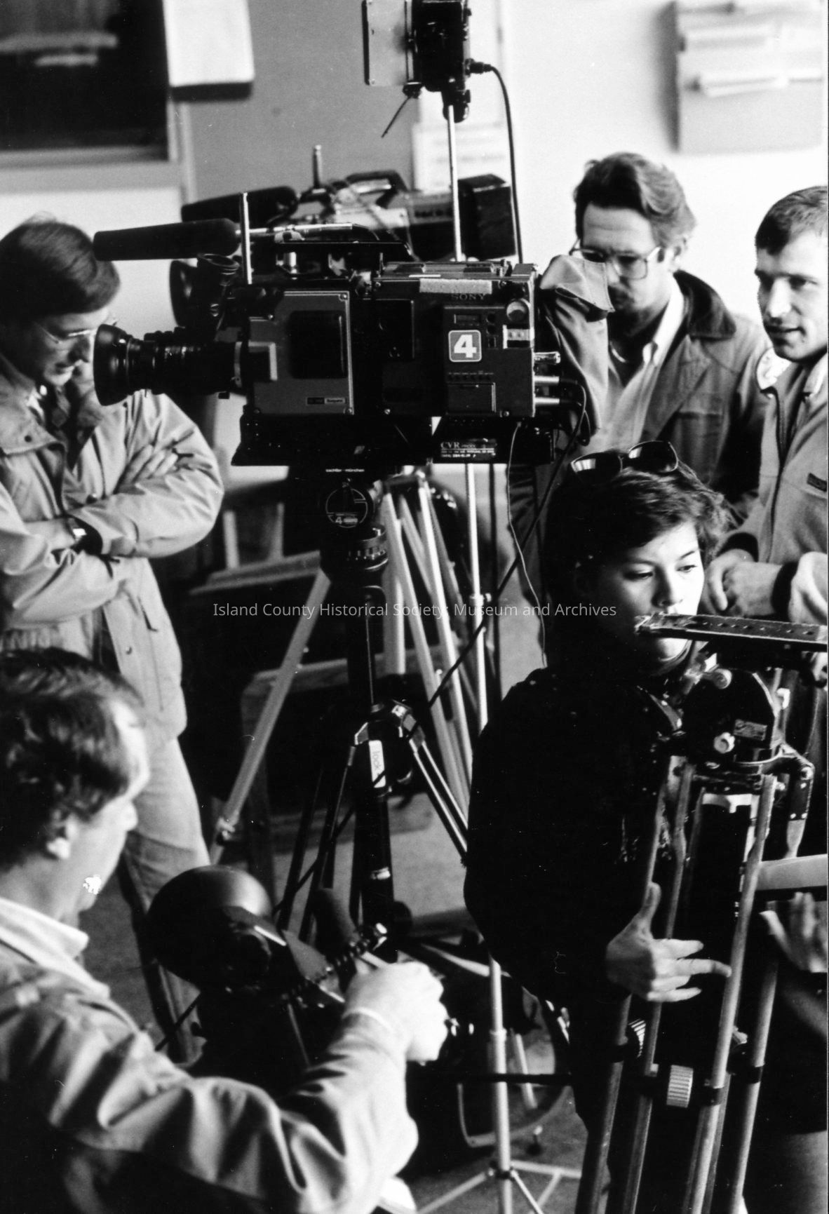 1989 trial of Darren Hutchinson for murder William J. Heffernan and John R. Saxerud, Island County Deputies slain at Sheriff headquarters on November 14, 1987. Defendant transported to Snohomish County. News reporters from throughout Puget Sound attended.Photograph Details