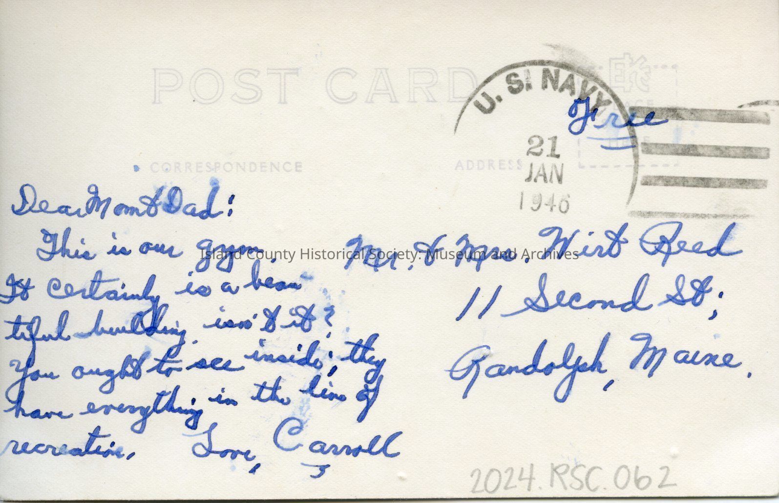 Postcard of the Combat Conditioning Building (gym) on NAS Whidbey circa 1940s
