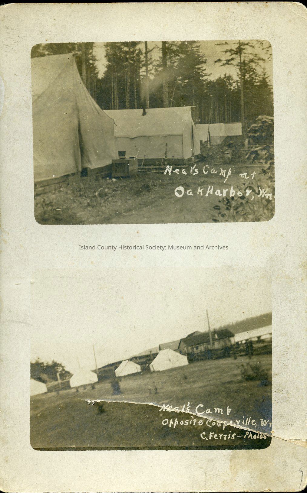 Postcard depicting what appears to be a military encampment at Oak Harbor called "Neal's Camp."