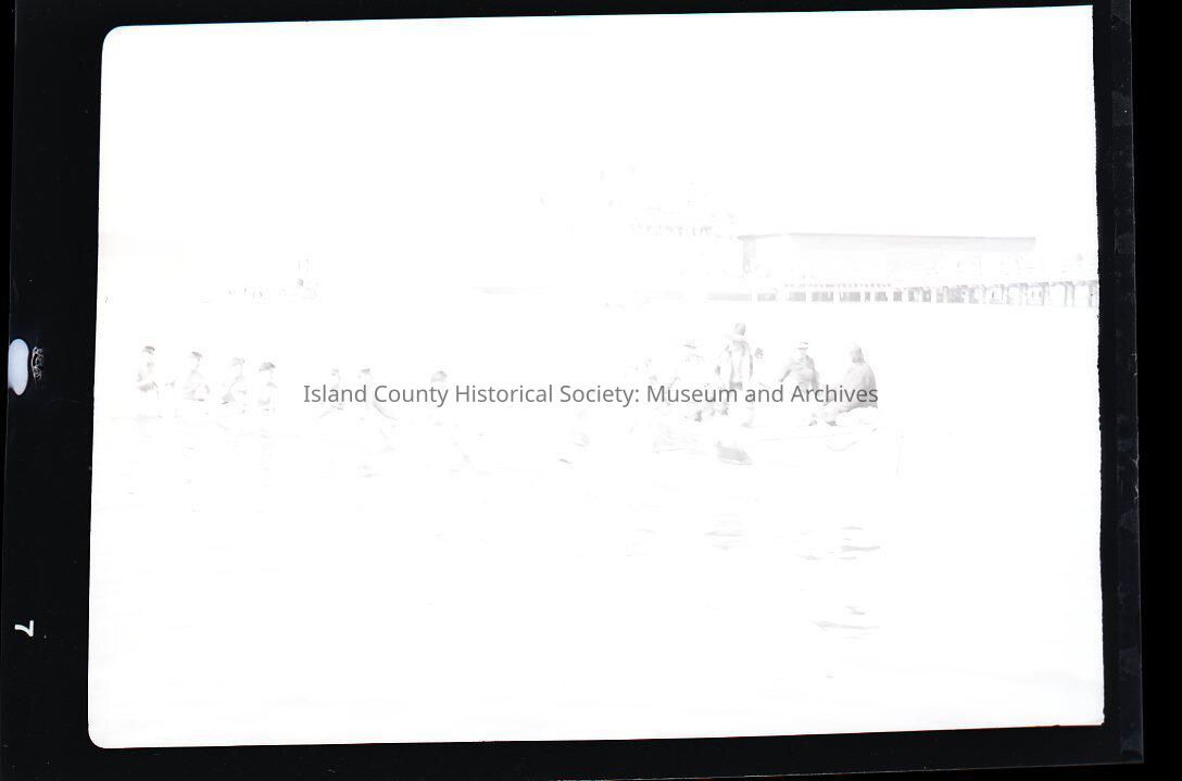 Native American Coupeville Water Festival. Color photograph. Extremely faint. Canoes in foreground and wharf barely visible in the background right side. A scan of the negative is available but the actual negative is not in the negative drawer.