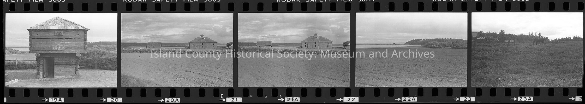 Negative strip of Ebey's Landing as well as nearby structures.