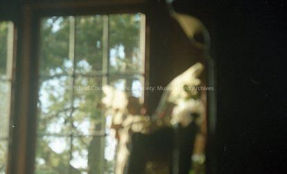 View out a window - statue of angel with wings spread - blurry.Made/Created