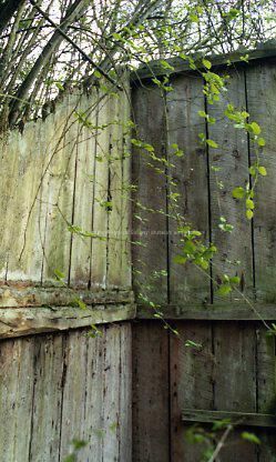 Parts of a wall of an old building; no roof; tree branch hanging in front of the wall.Made/Created