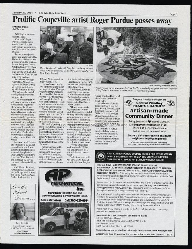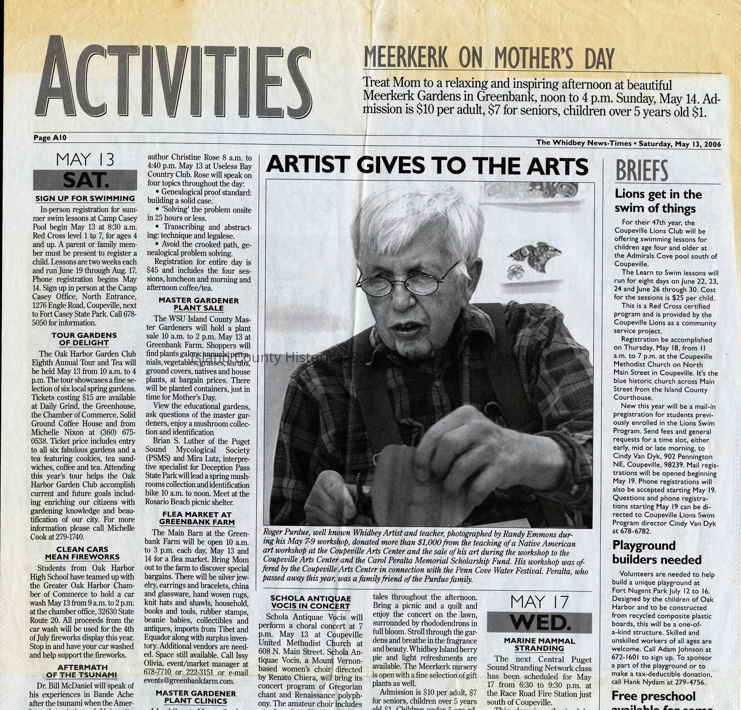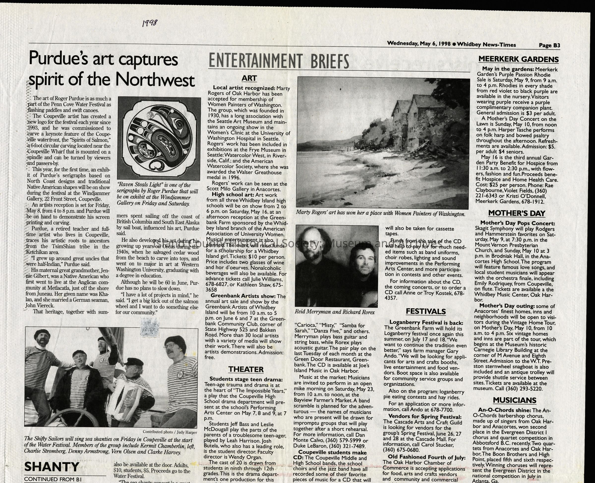 Digital Scans of a collection of newspaper articles about Roger Purdue and his art, as well as photos taken specifically for the newpaper articles