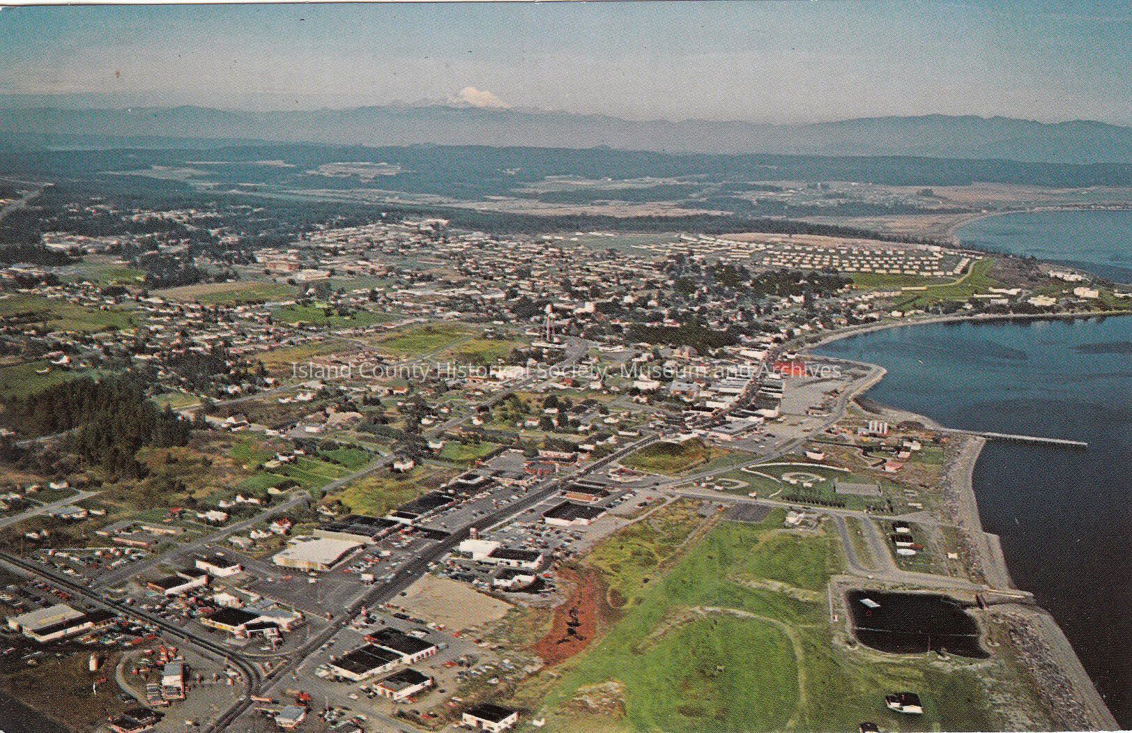 This color postcard aerial shows Mt. Baker rising in the background of the North CascadesMade/Created