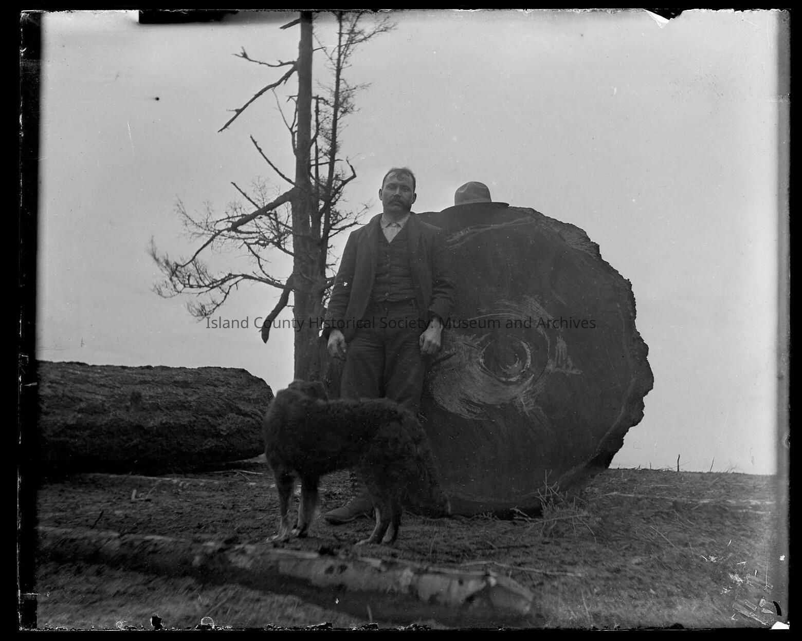 Man and dog by log in Coupeville City ParkCollection