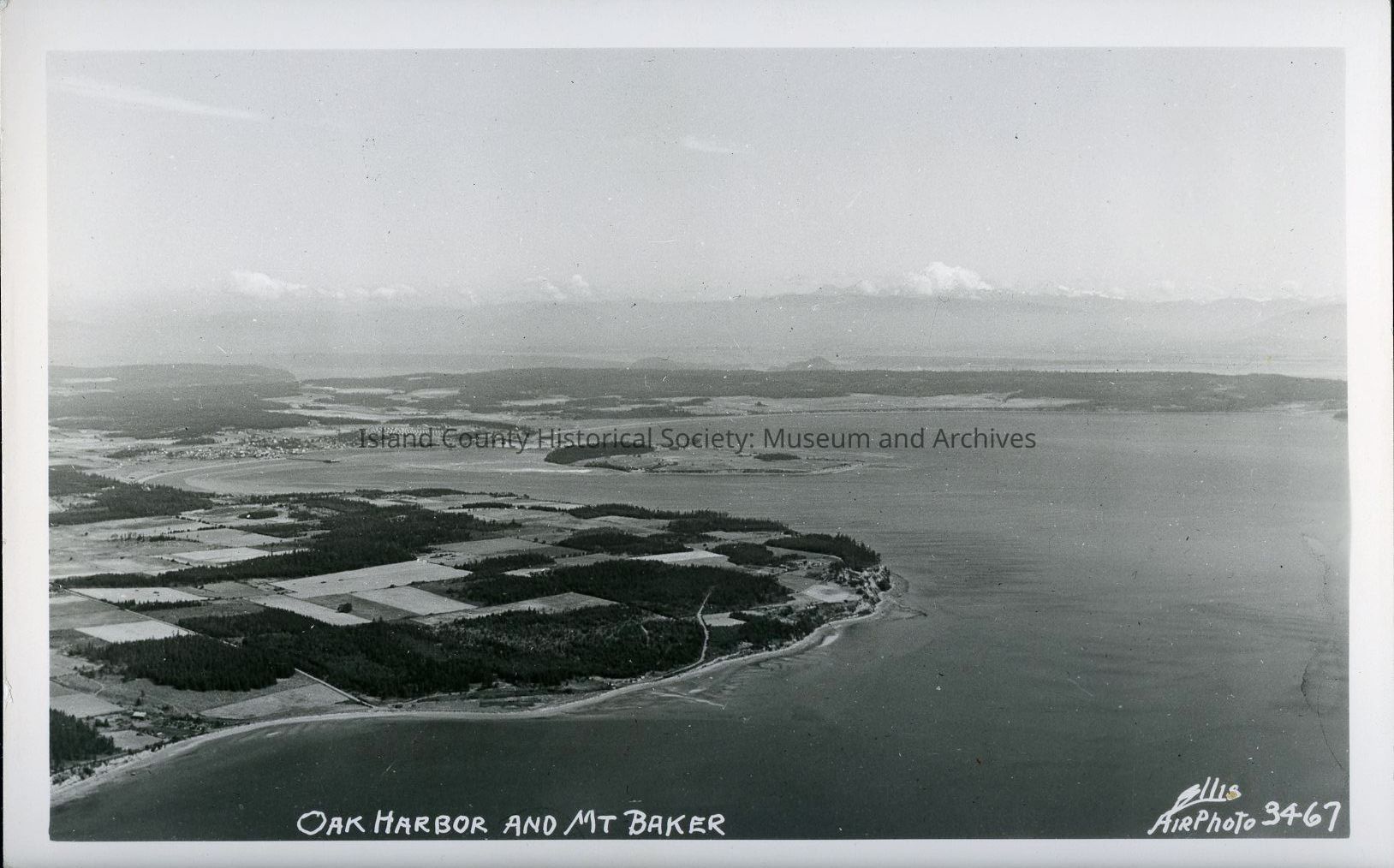 Postcard depicting Oak Harbor and Mount Baker. Photo by Ellis. Likely c. late 1940s.Collection