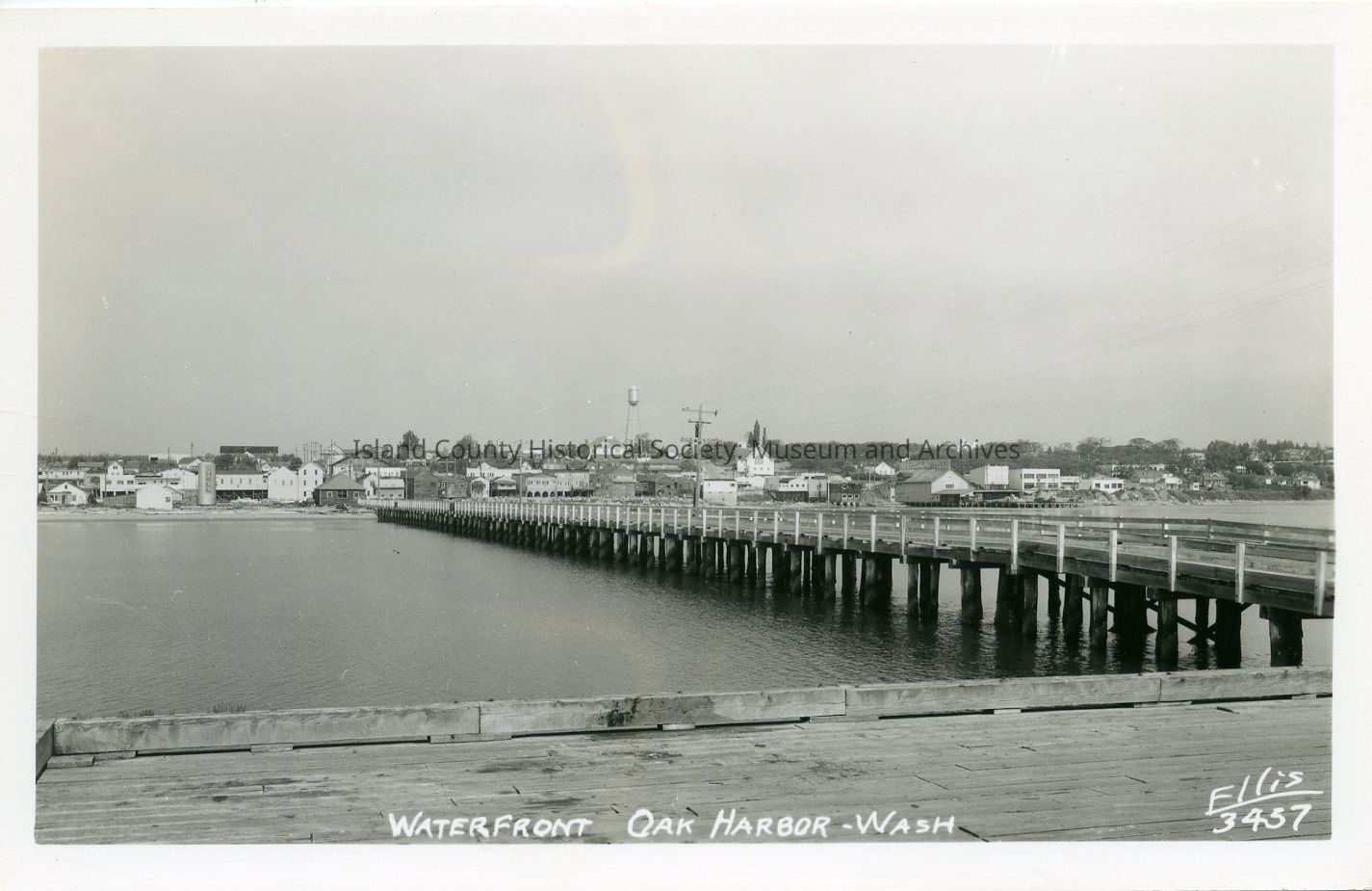 Postcard depicting a view of the Oak Harbor waterfront. Likely c. 1940s or 1950s. Photo by Ellis.