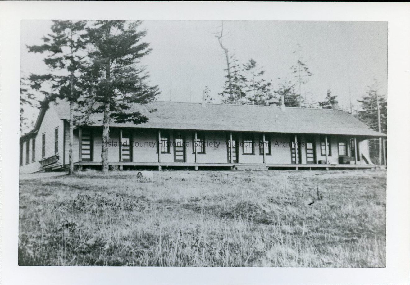 Photograph of an Ordinance Storehouse at Fort Casey. The building was completed in 1901, and was located behind the main emplacement (near the Amusement Hall). This building is now used as the Washington State Parks Ranger Headquarters. Photo c. 1905.Photograph Details