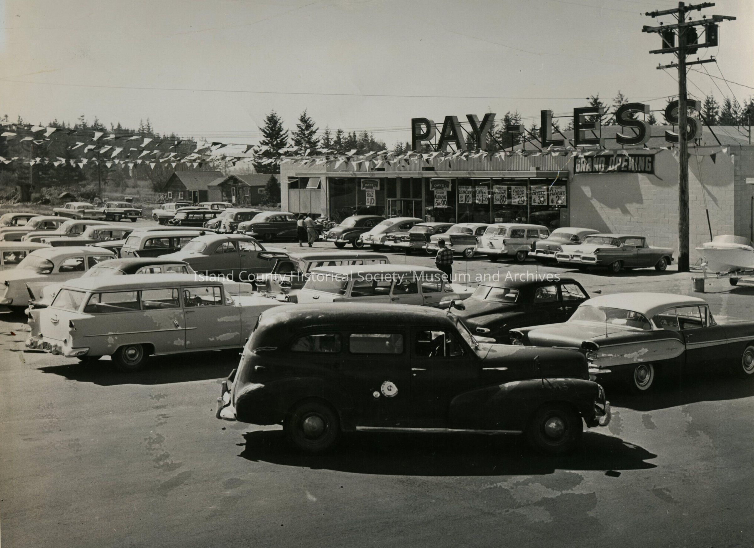 A photo of Pay-Less Foods Grand Opening, with cars parked out front.