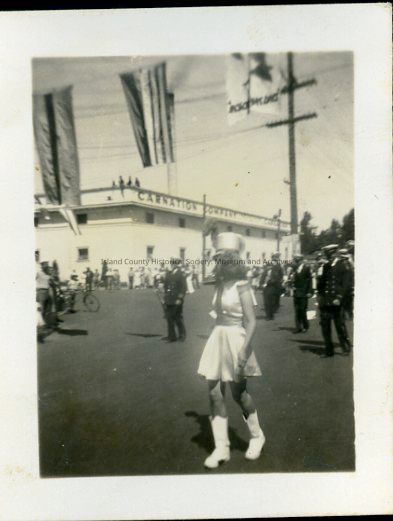 Photograph of parade participants at the Penn Cove Water Festival, likely c. 1940s.Photograph Details