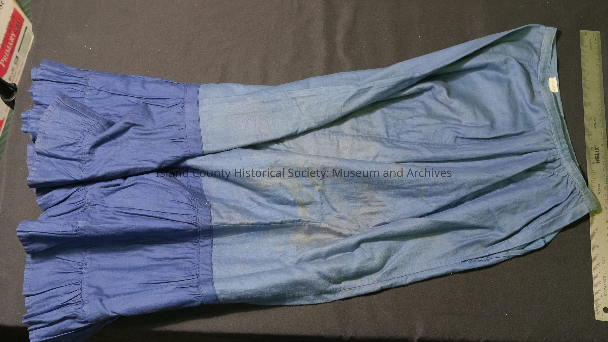 Blue sateen petticoat. Owned by Mrs. Ada Straub Harrington.