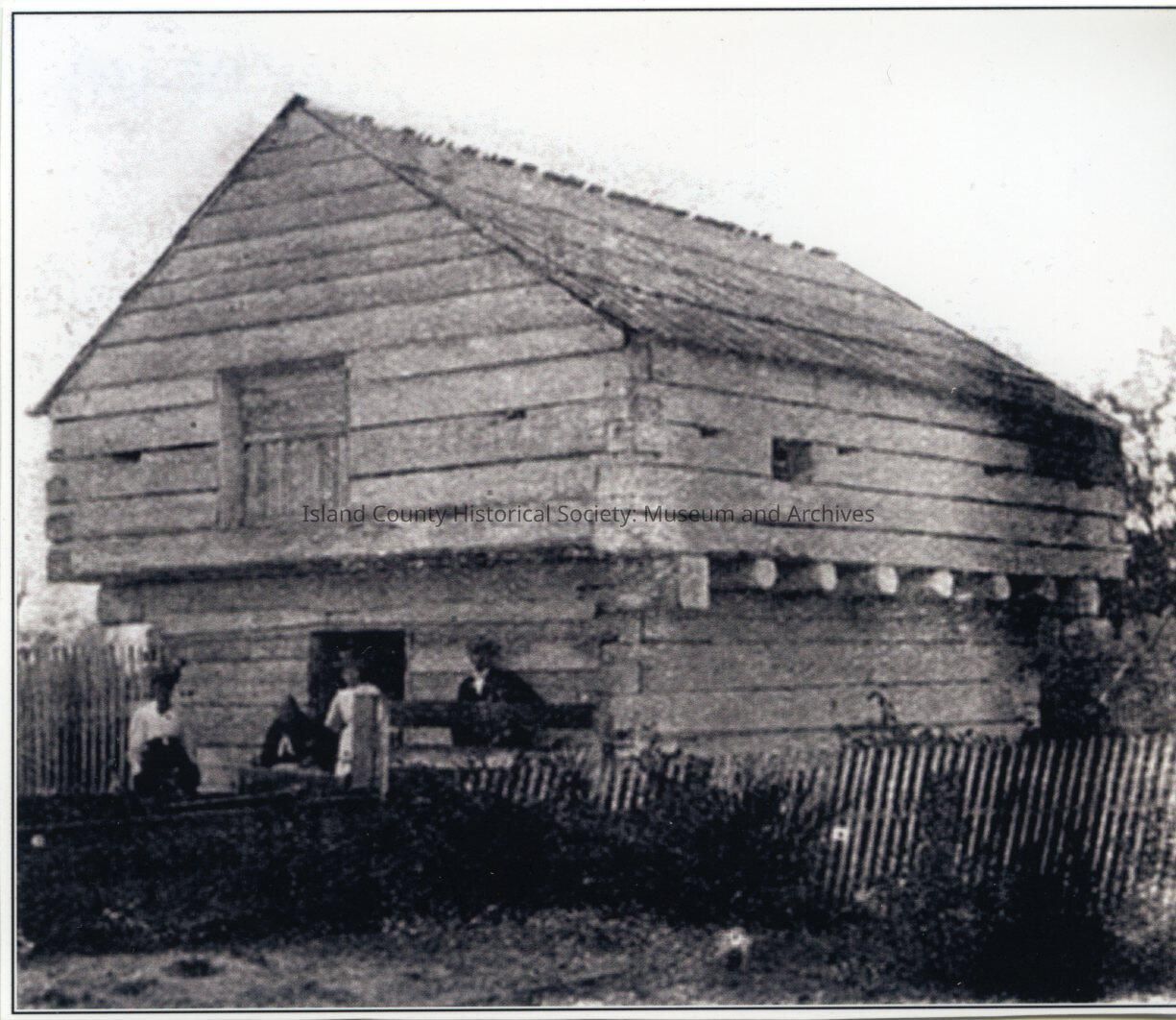 Alexander Block House, fence, people standing in front, poor black and white reproduction.