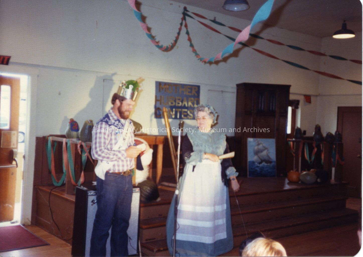 Photo of man and woman in a building . On the back of the photo handwritten is '83 June Wright / Dale Sherman