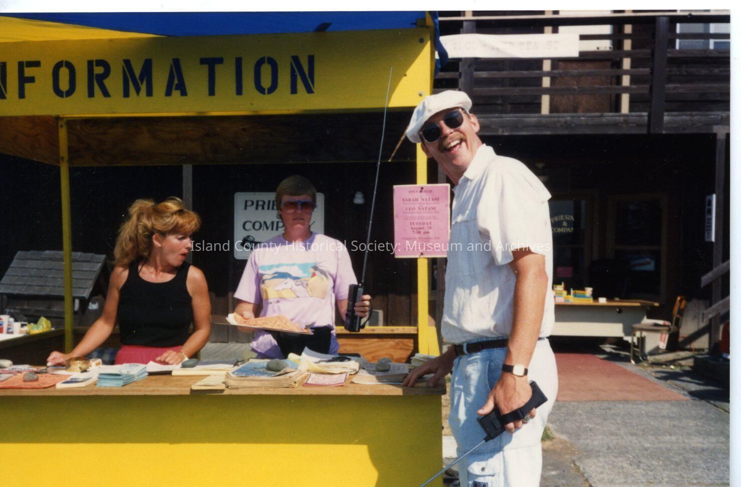 Arts and Crafts Festival. Several people at Information Booth. Handwritten on back Laurie, Val Arnold and Don Wodjenski.