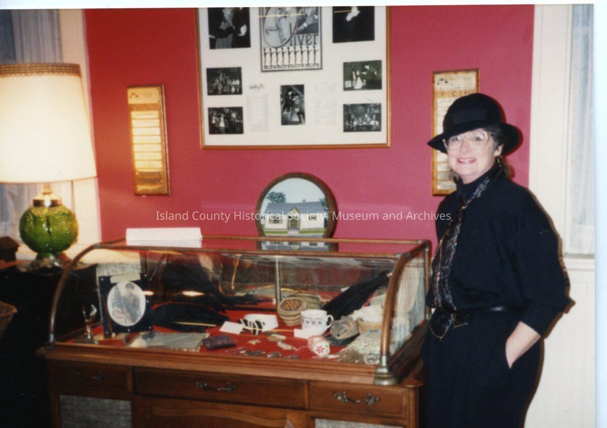 Woman in Museum. Handwritten on back Emily - Museum Theater Night. 10/88.