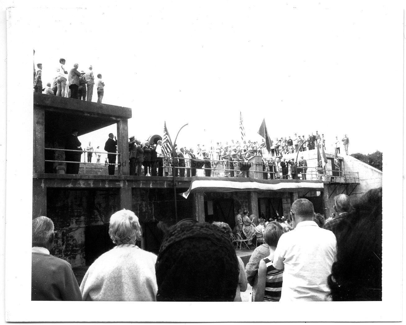 Black and white photograph of Fort Casey crowd, band and ceremony.