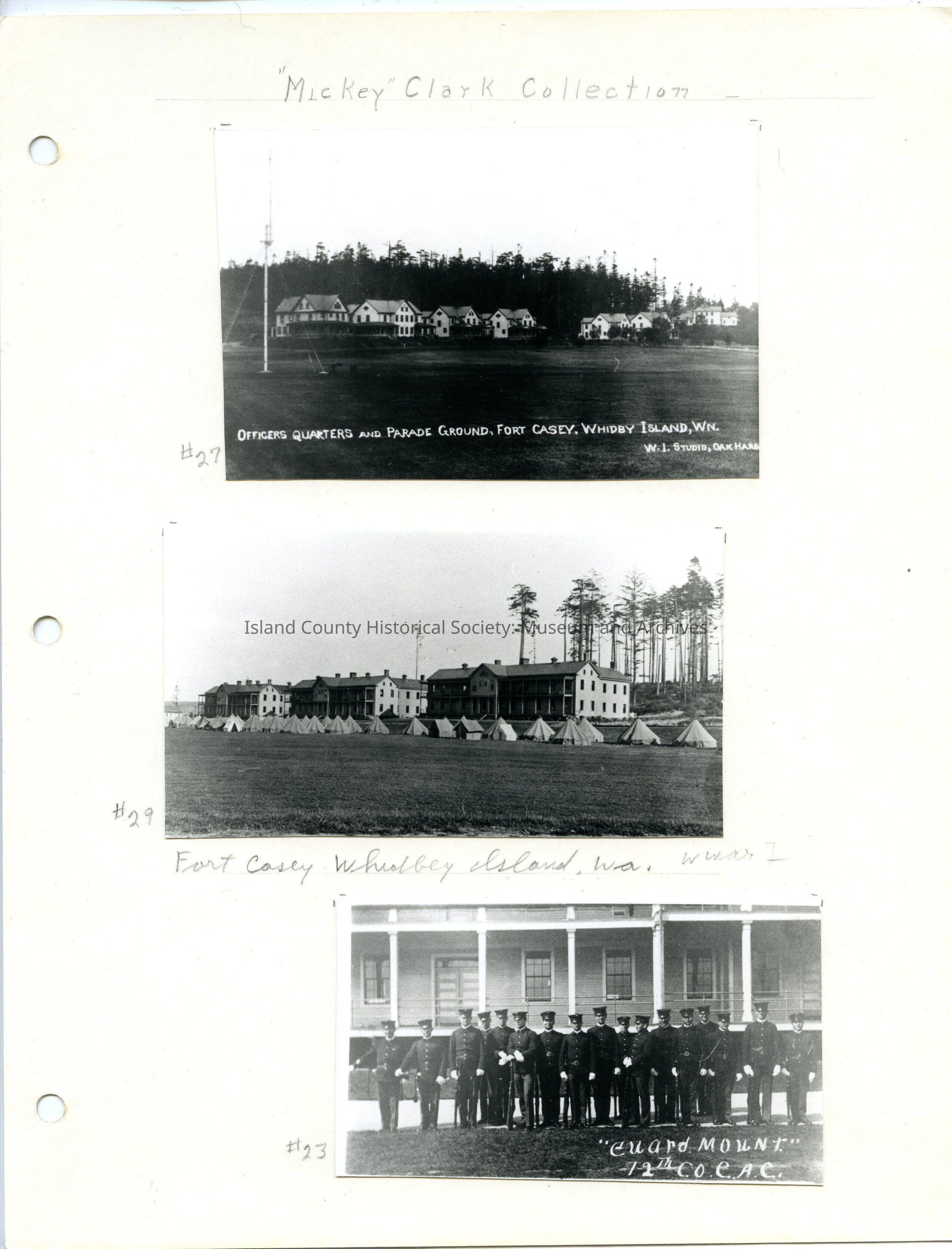 Written on the page are the words "Mickey Clark Collection", and "Fort Casey Whidbey Island, wa. w war I".Made/Created