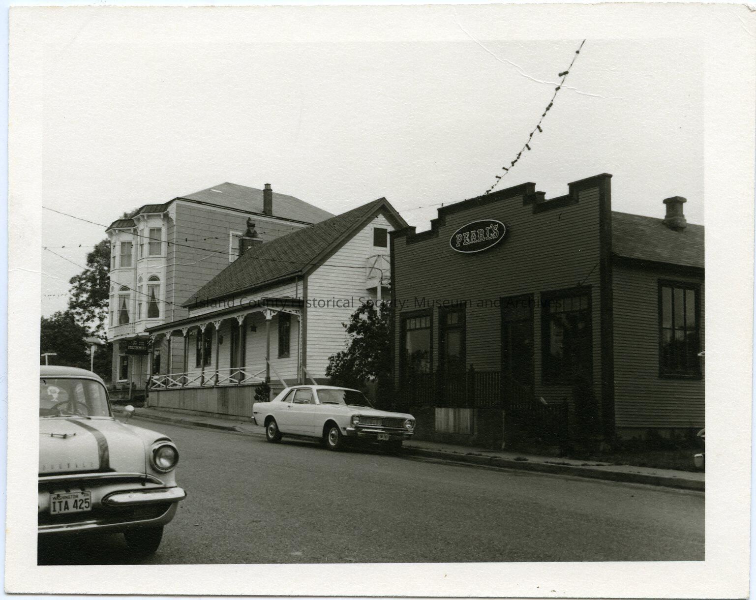 1936-1945 Tom Howell's Barber Shop, 1945-1968 Beauty Shop, 1970 Pearl's, 1970's Haviland Antique Shop, 1998 Front Street Antiques, 2000 Seawitch Architectural Interiors, 2003 Door to Door Interiors, 2007 Seawitch Architecturals, 2009 The Tea Shop, 2011 The Vintage Perch, 2013 Handbag Consginment Shop, 2018 renovated, 2019 Marbly.