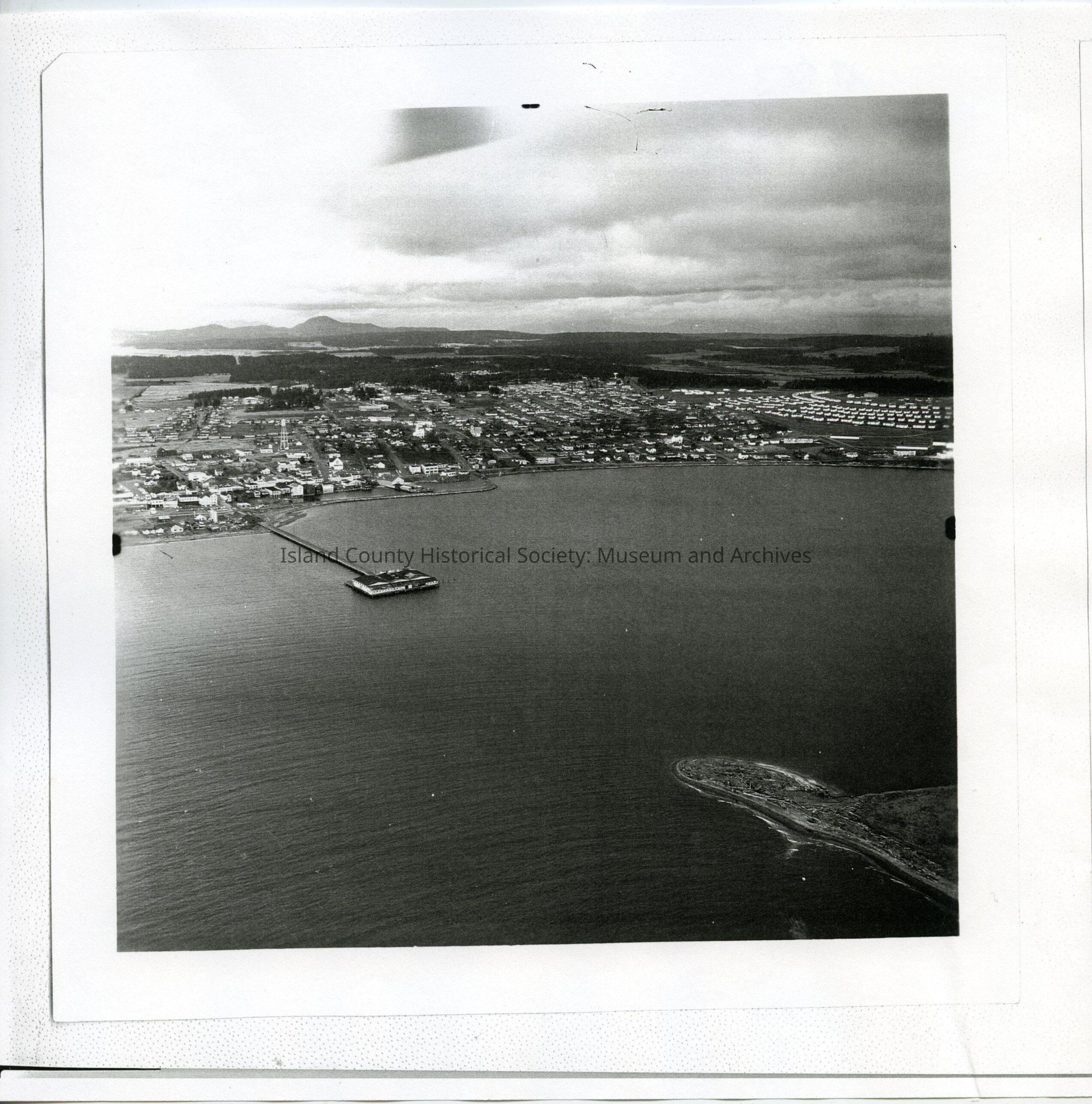Aerial photo of NSA Whidbey, Ault Field, looking south to Oak Harbor and the Seaplane Base.