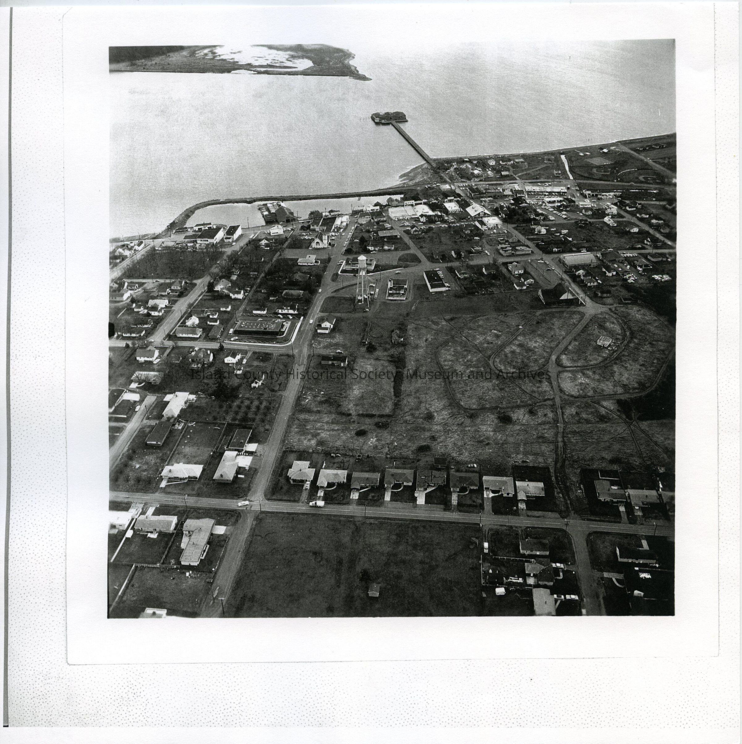 Aerial photo of NSA Whidbey, Ault Field, looking south to Oak Harbor and the Seaplane Base.