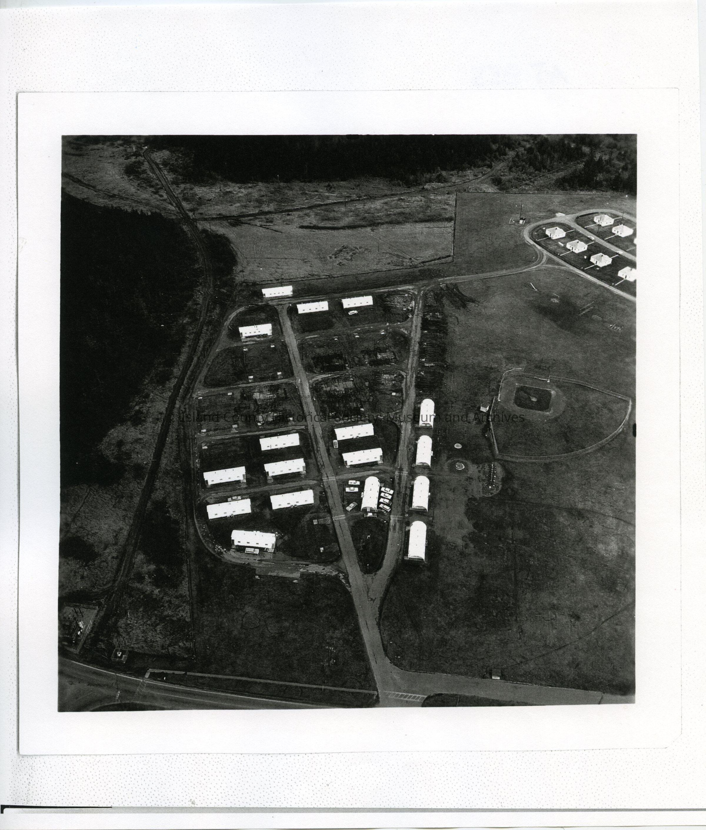 Aerial photo of NSA Whidbey, Ault Field, looking south to Oak Harbor and the Seaplane Base.