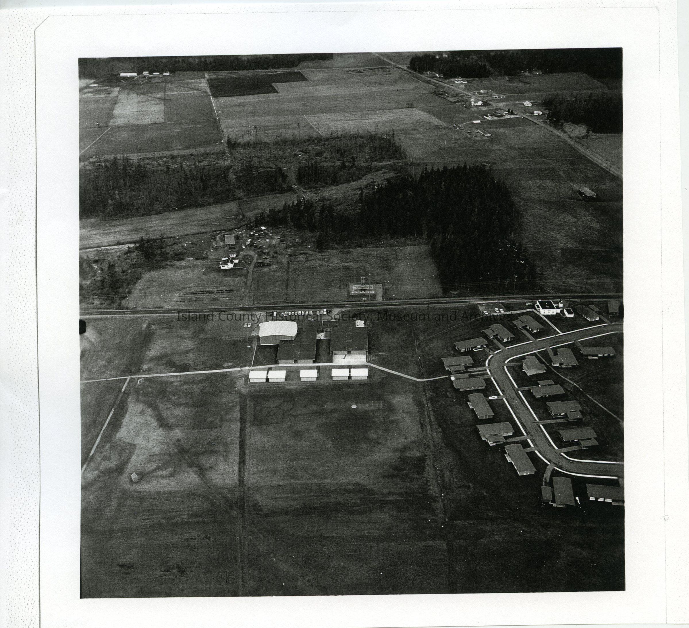 Aerial photo of NSA Whidbey, Ault Field, looking south to Oak Harbor and the Seaplane Base.