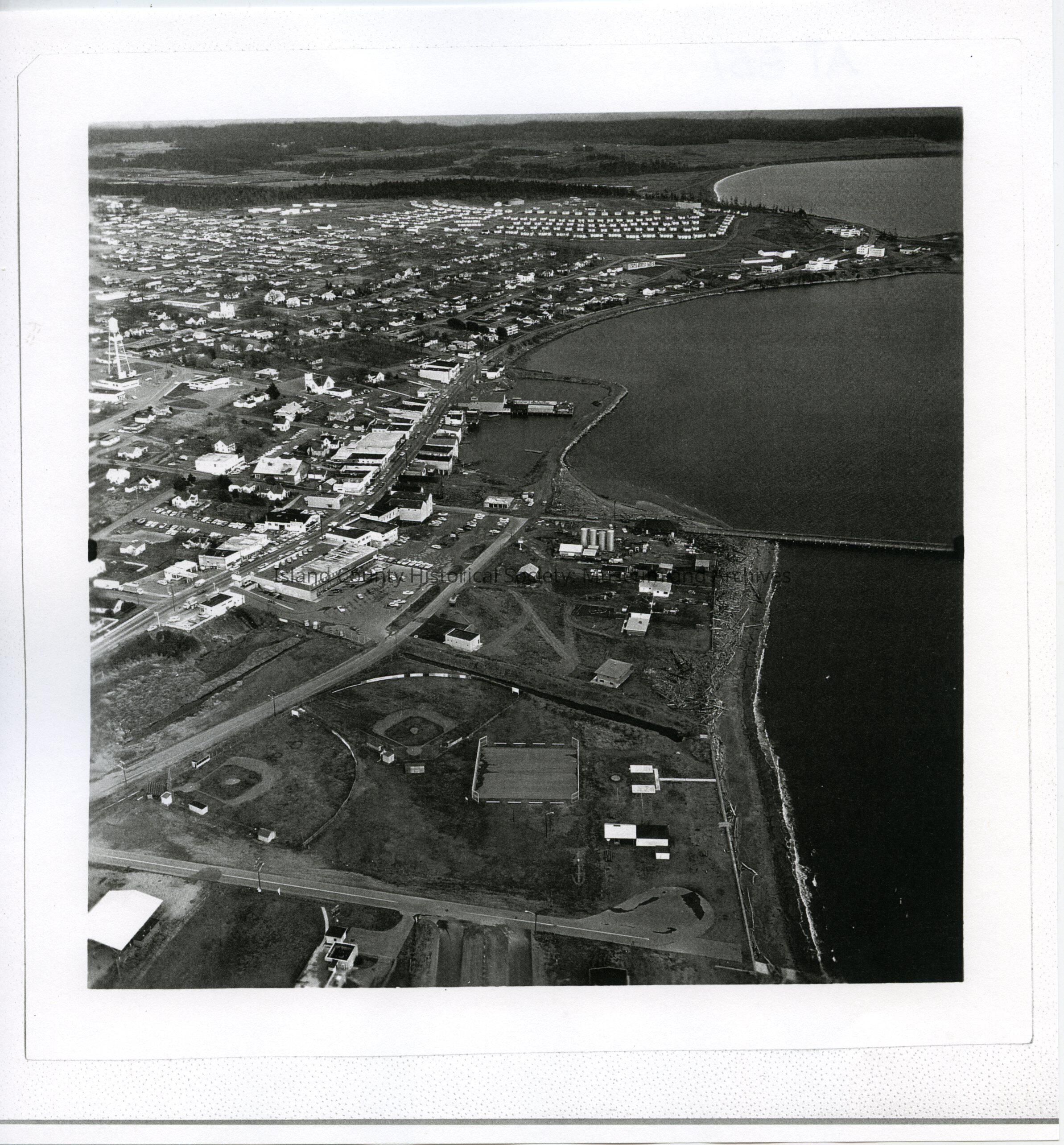Aerial photo of NSA Whidbey, Ault Field, looking south to Oak Harbor and the Seaplane Base.