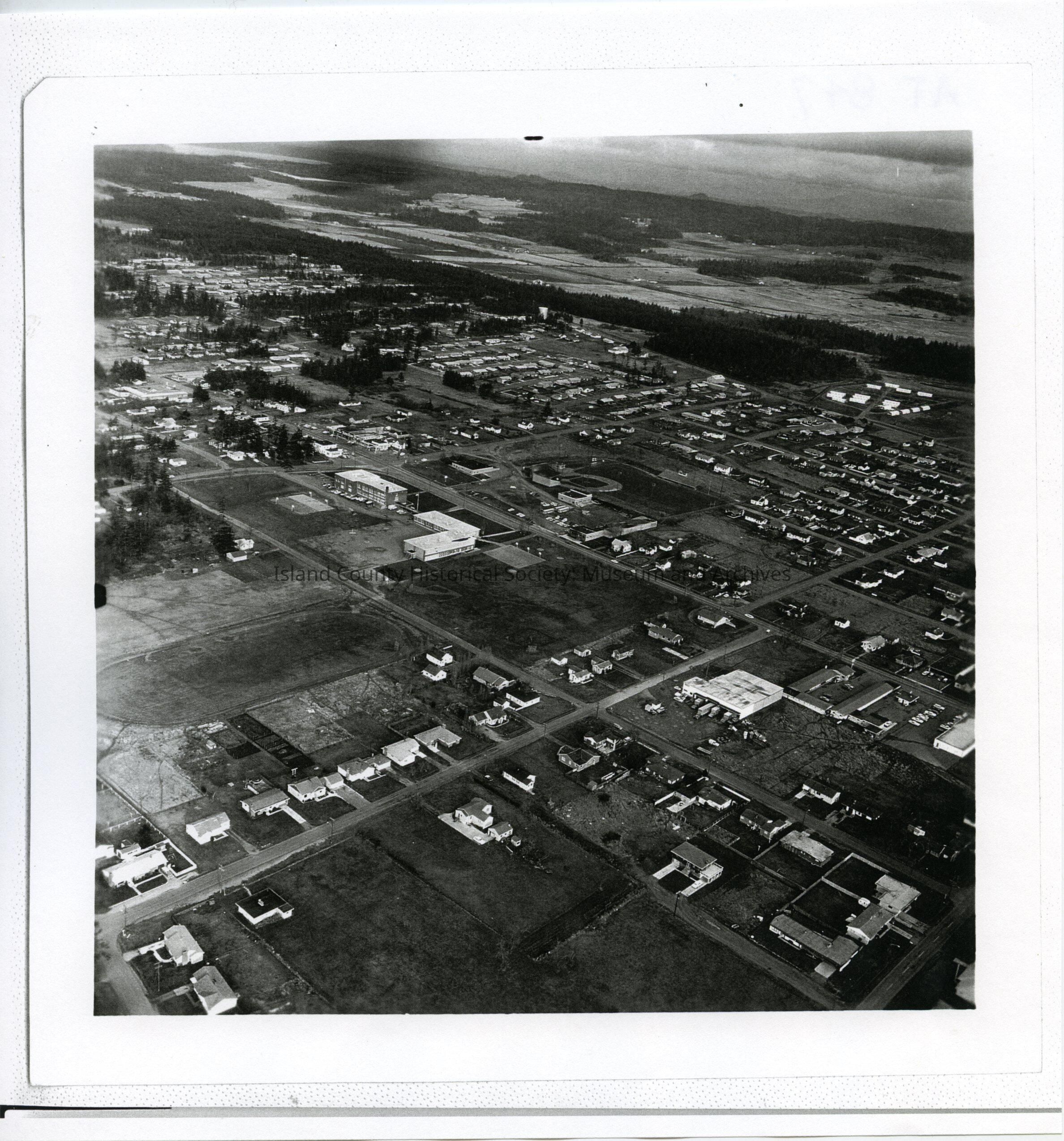 Aerial photo of NSA Whidbey, Ault Field, looking south to Oak Harbor and the Seaplane Base.