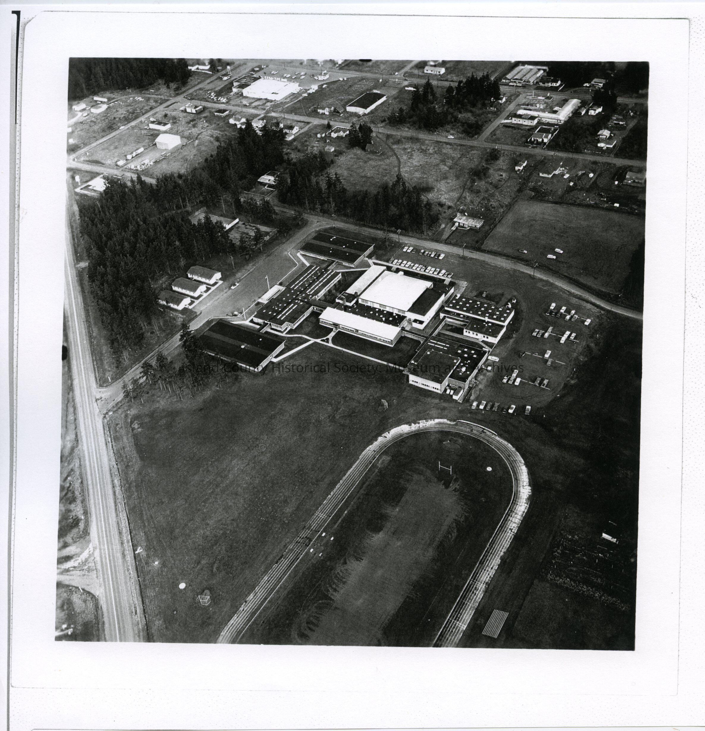 From the accession book and on note on the back: 9 March 1964, aerial view of Ault Field (land plane base) looking back toward Seaplane Base, NAS WhidbeyMade/Created