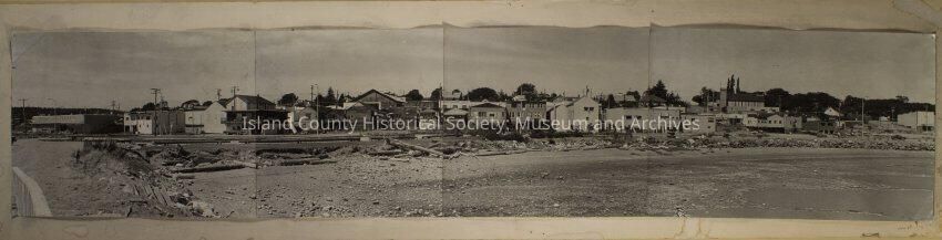 Panoramic black and white photo from the Dorothy Neil Collection, of Oak Harbor waterfront 1978.