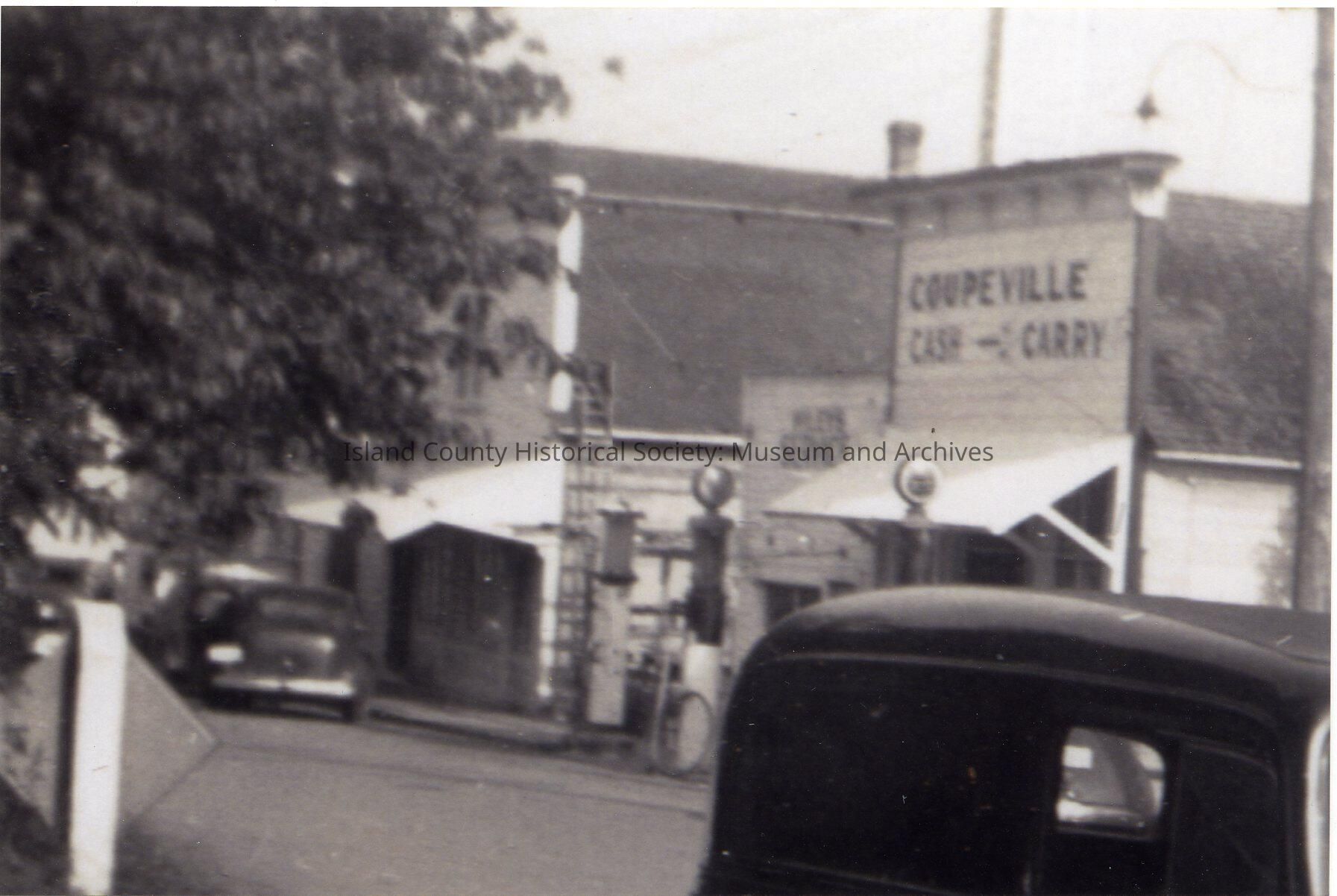 From the Coupeville Aracadia book, page 115 (excerpts): Ilah Lindsay Engom (age 19), she bought Fort Casey Dry Cleaners in 1941, standing with her 1935 Chevrolet. Cash and Carry - now Toby's Tavern, plumbing business, Wiley's Service.