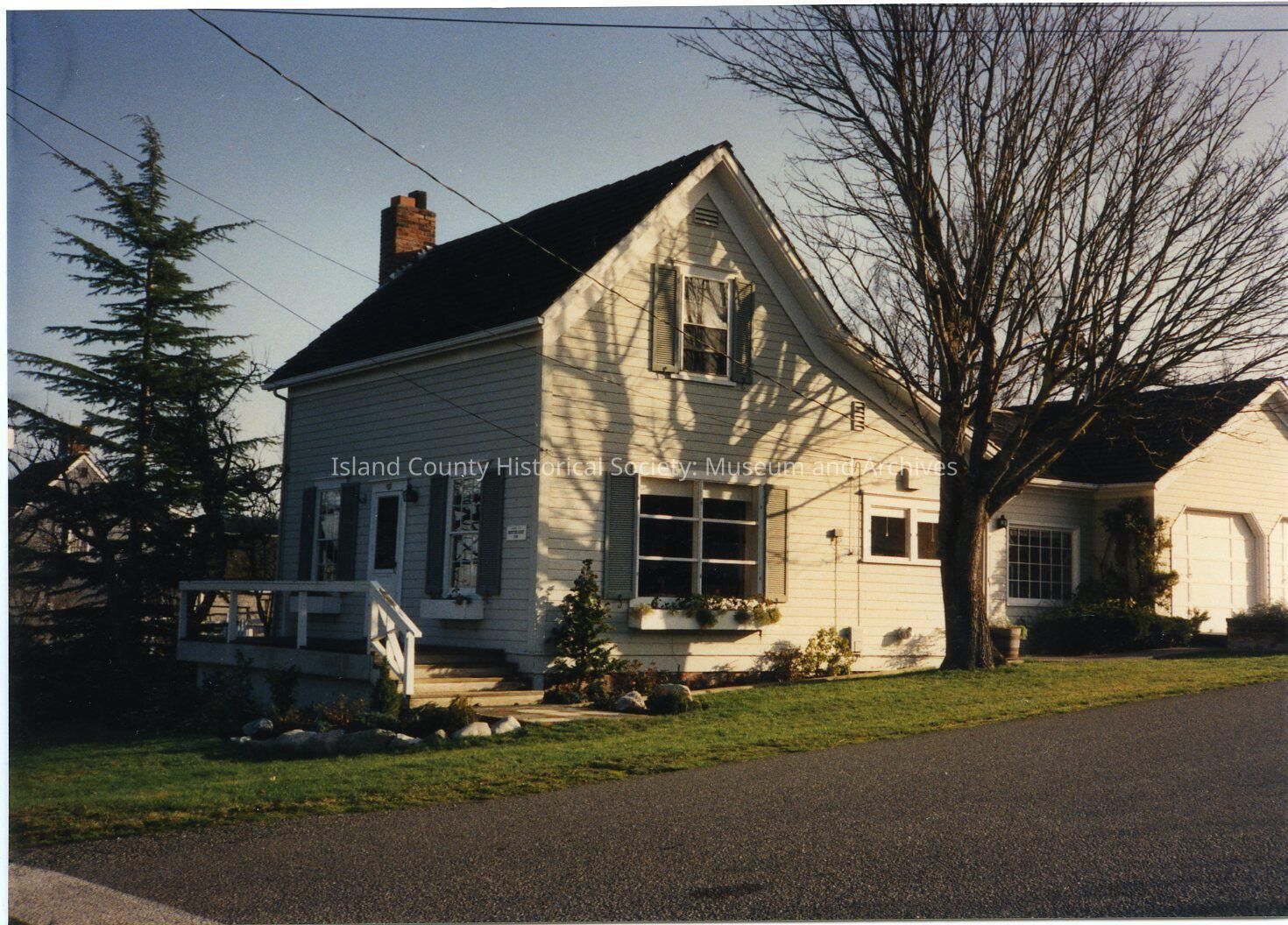 Photo of the building at 101 NE 9th Street, Griffith house. It was built in 1869. It is almost saltbox style, with a section at the rear and two-car garage. Front porch, central door and two windows. Window box on side window. It recently sold as a private residence.Made/Created