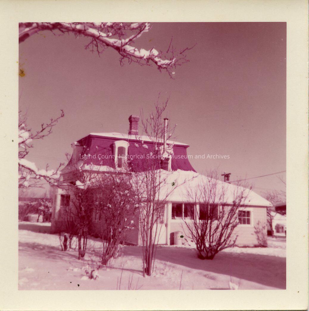 This is a photo of a house during winter. On the back of the picture Zylstra house is listed with no date. Jimmie Jean Cook purchased the Zylstra house in 1955 and lived there until 1983. The house is now used as a seasonal residence.