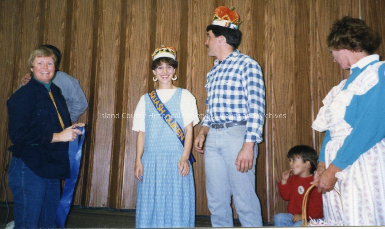Photo of Harvest Festival. On the back of the photo it states: Val w/ King's Queen Squash - Debbie Don Sherman 10-88.