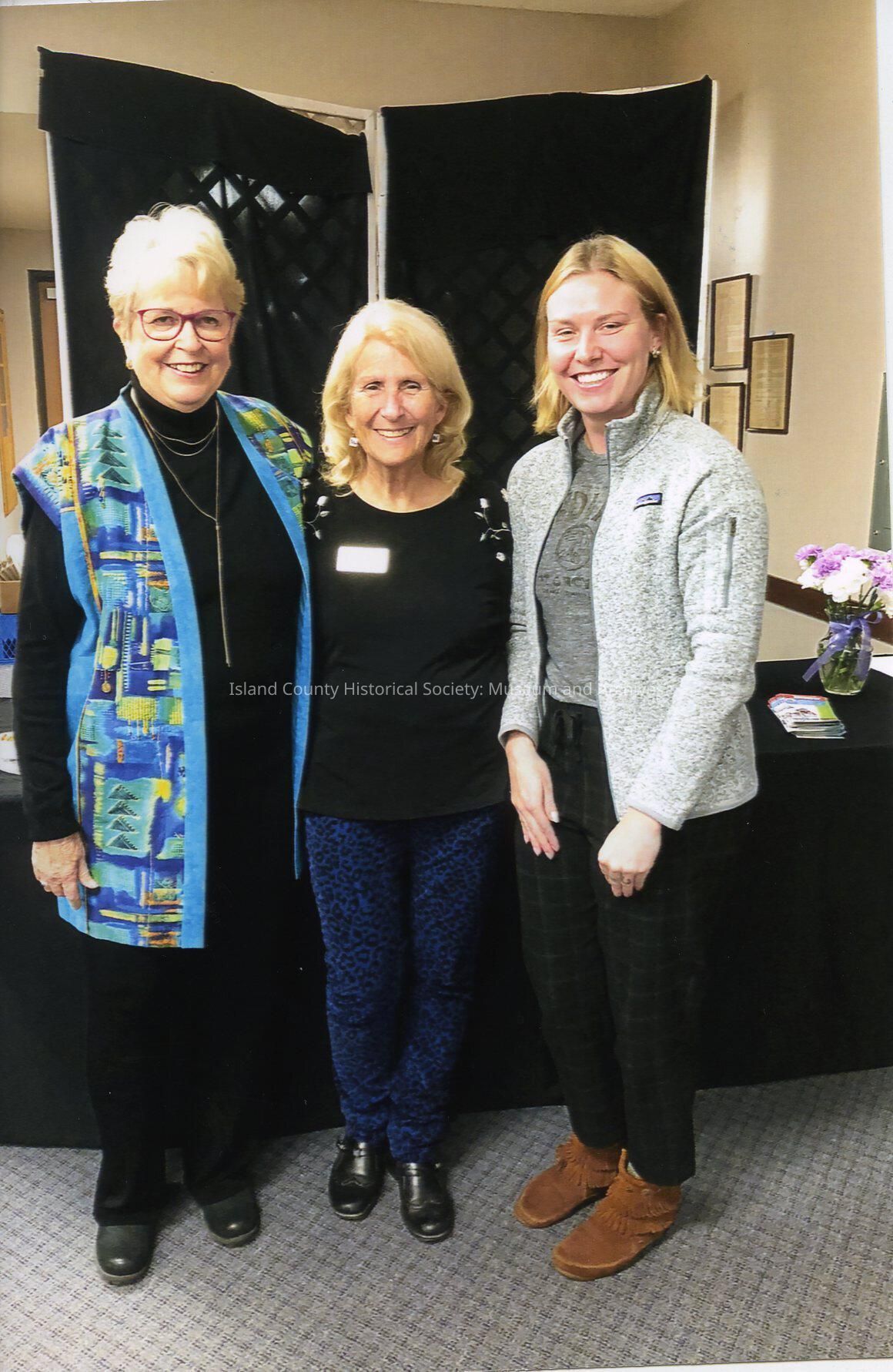 Picture of Judy Lynn, Diane Groeschell, and Judith Goebbels at the Island County Historical Museum annual fundraiser. Judy was recognized for her support and unwavering dedication to Island County history and the town of Coupeville. The event was held Oct 13, 2018 at the Elks Lodge in Oak Harbor, WA.Made/Created