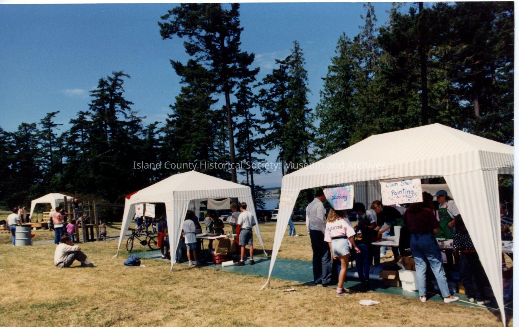 Might be part of Coupeville Arts and Crafts Festival at park. Three tent booths. On back is date of 1991.