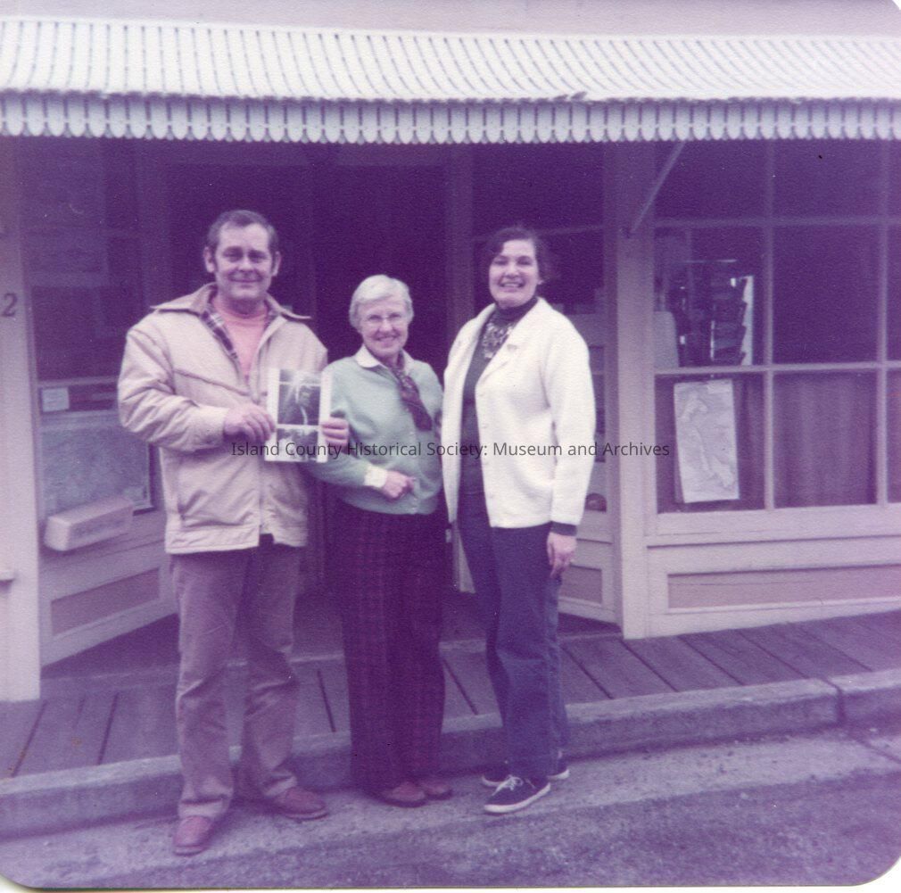 Photo of Betty and Russell Frost and Mickey Becker on Front Street in Coupeville.